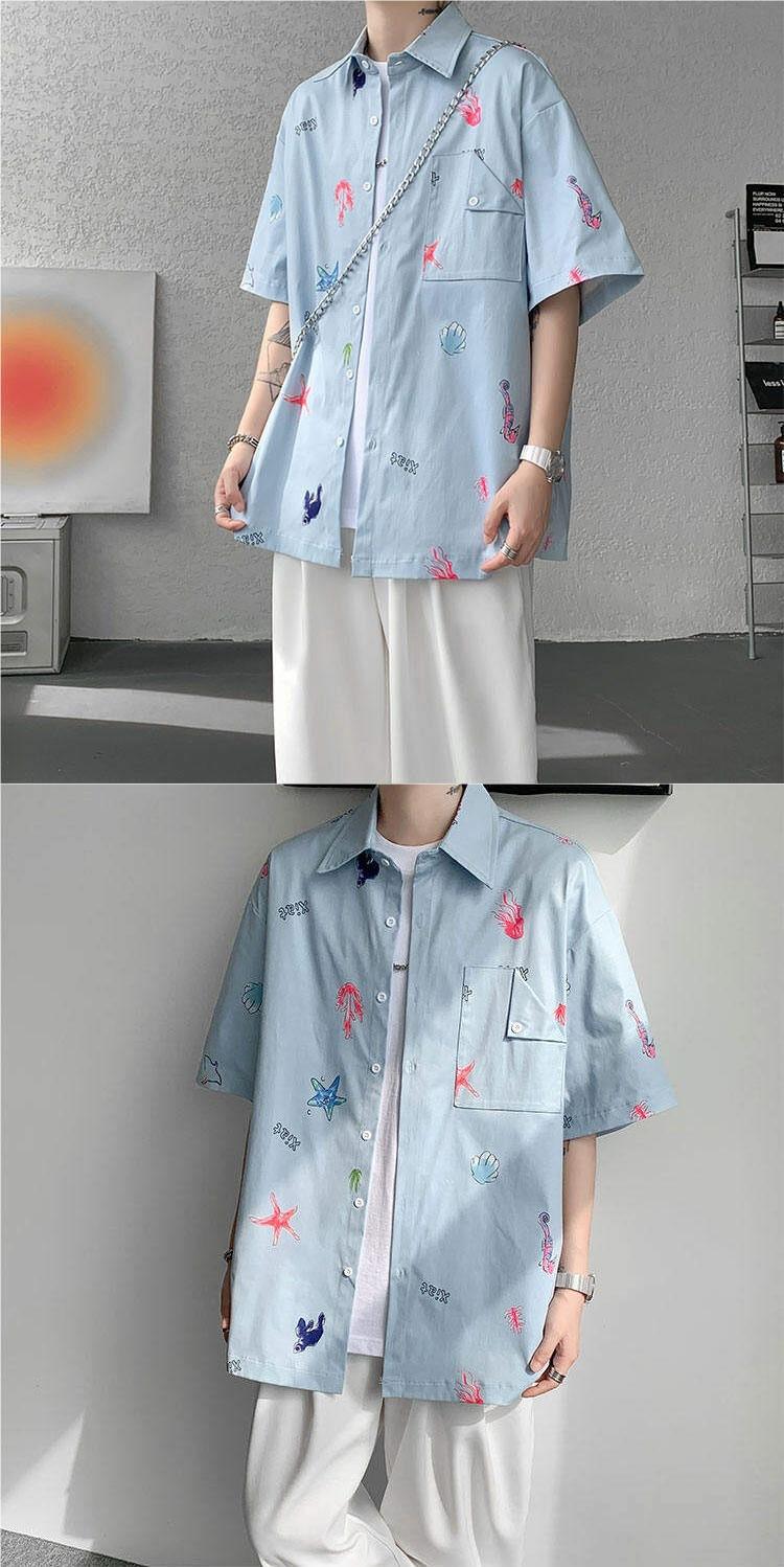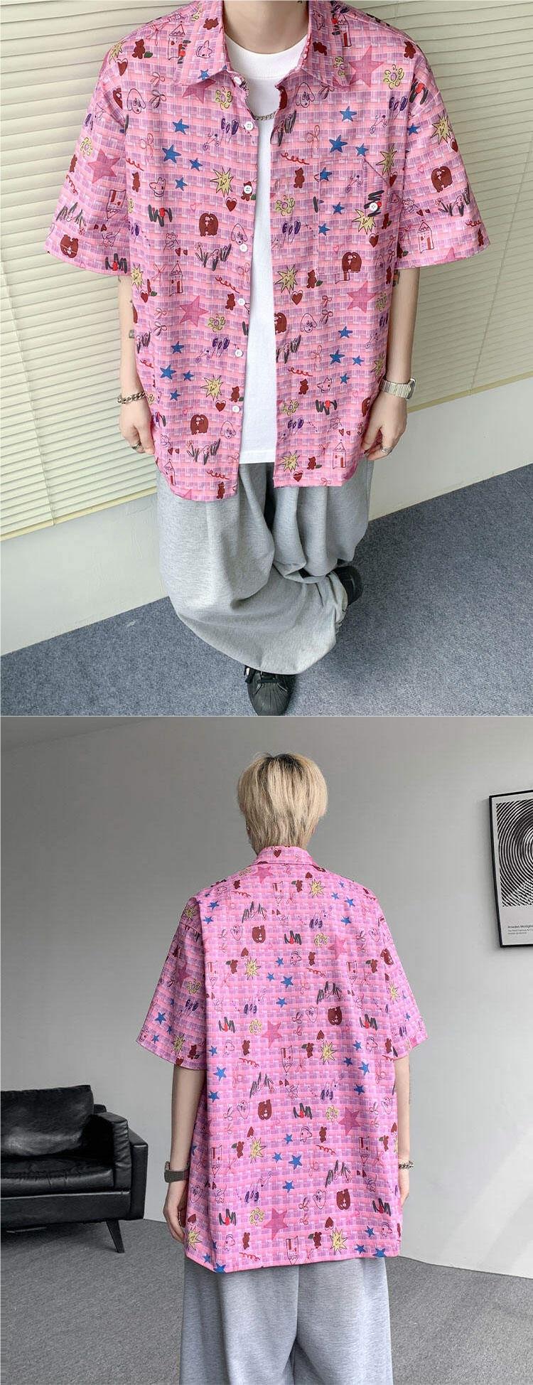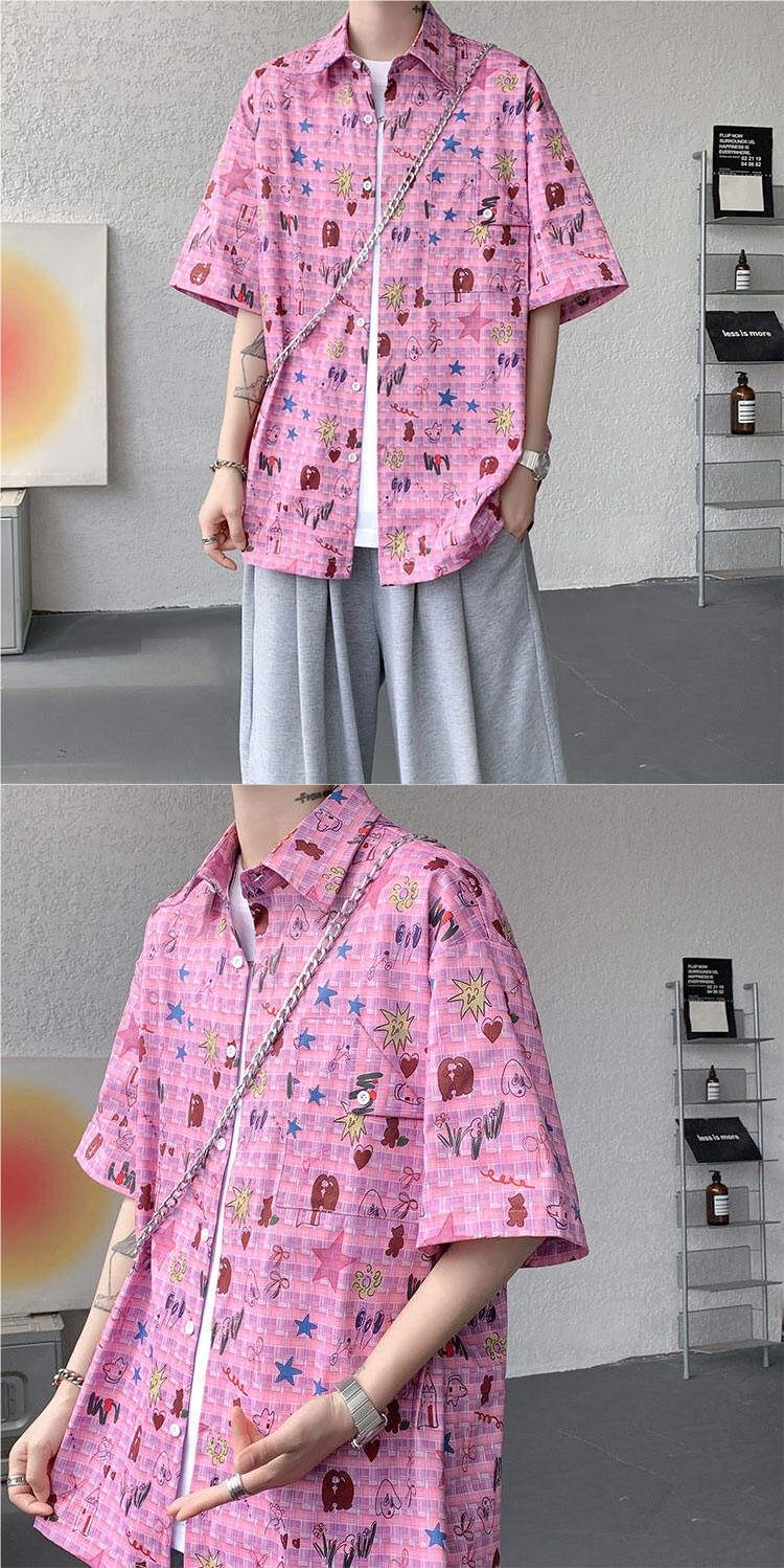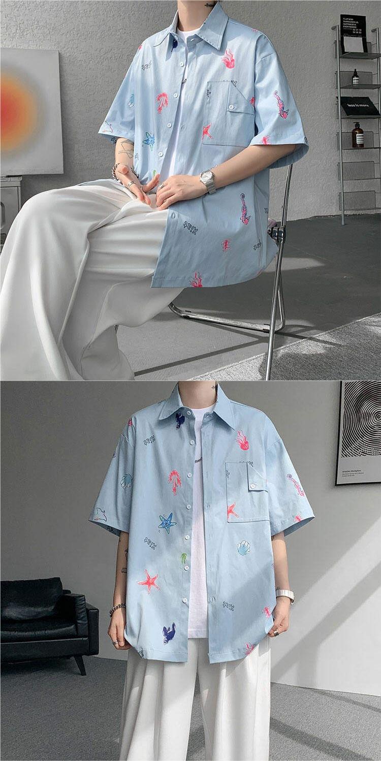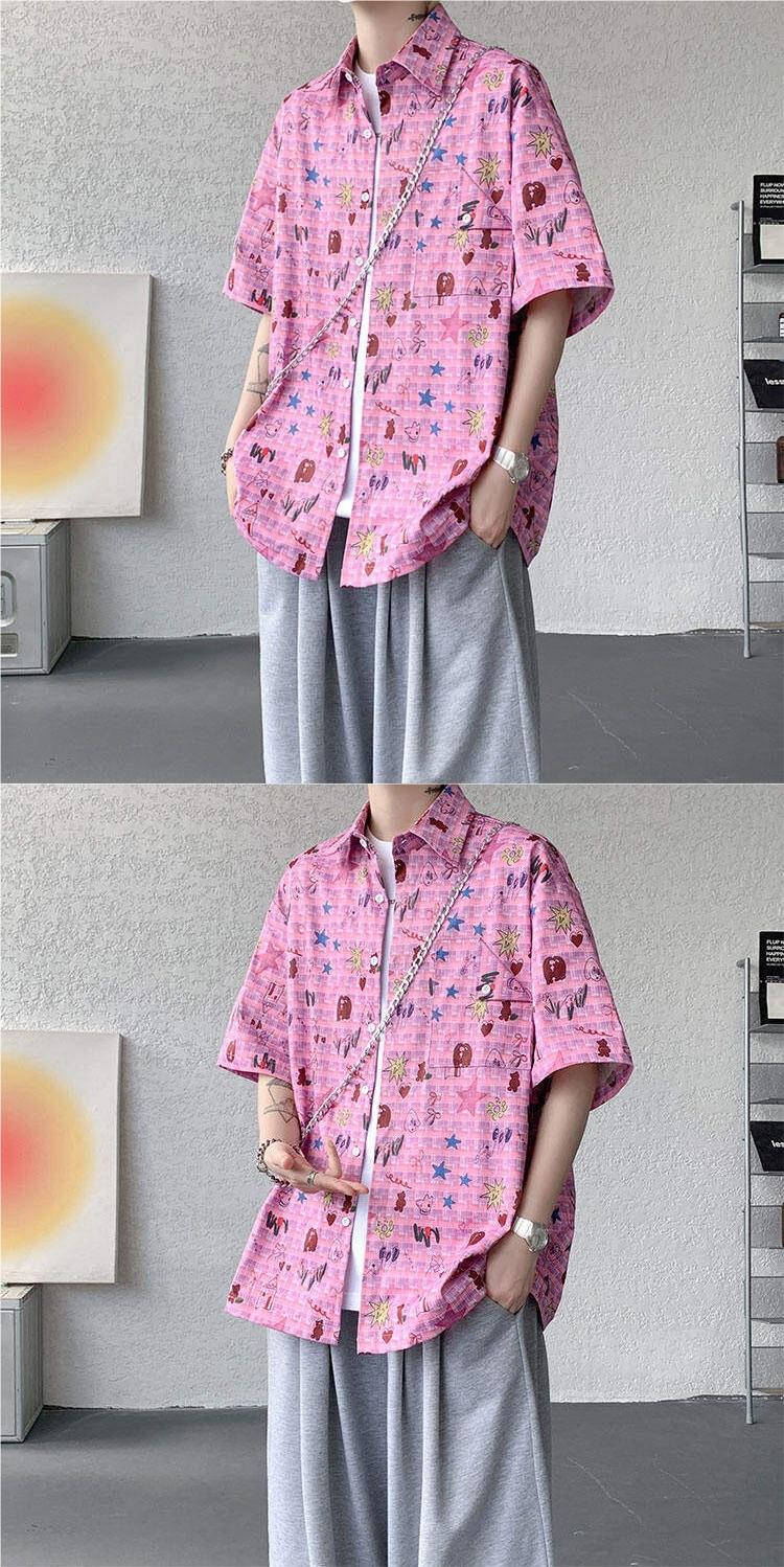 2025 Nueva Camisa de Verano para Hombre de Manga Corta Camisa Estampada Camisa Casual Delgada de Seda de Hielo para Hombre Manga Corta Holgada Talla Grande