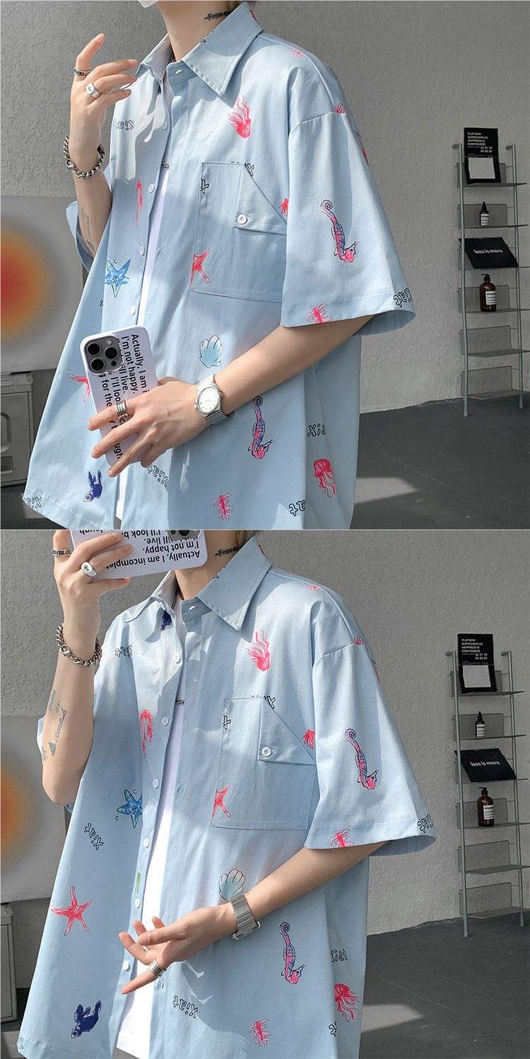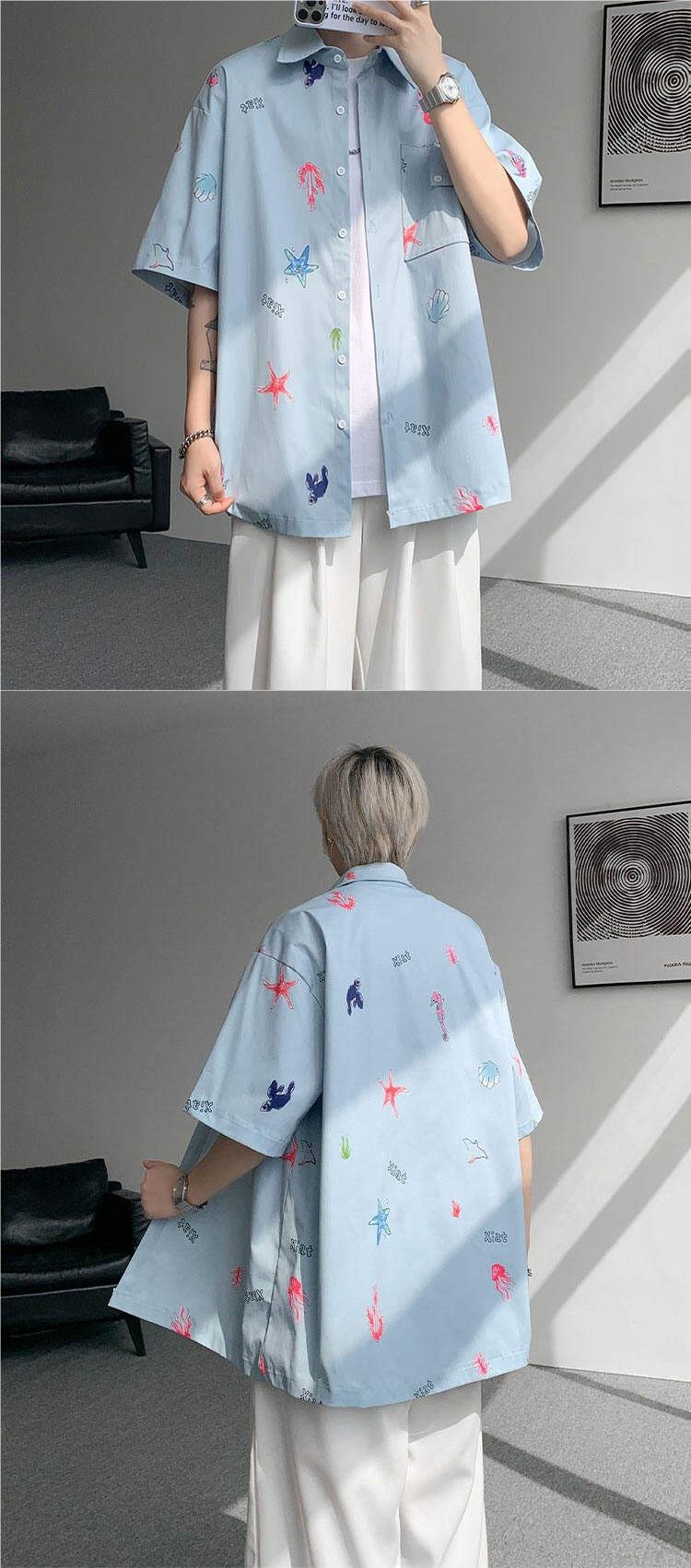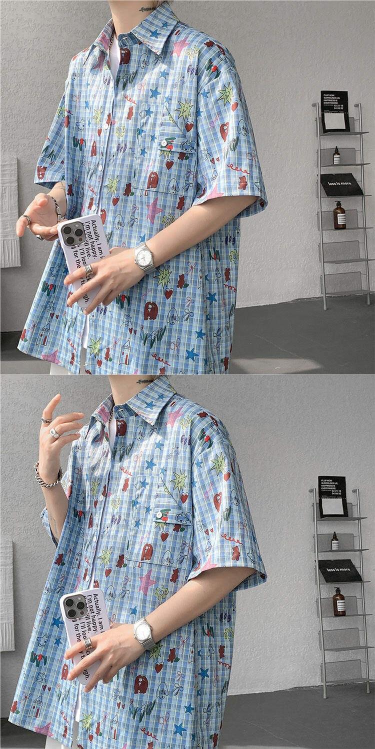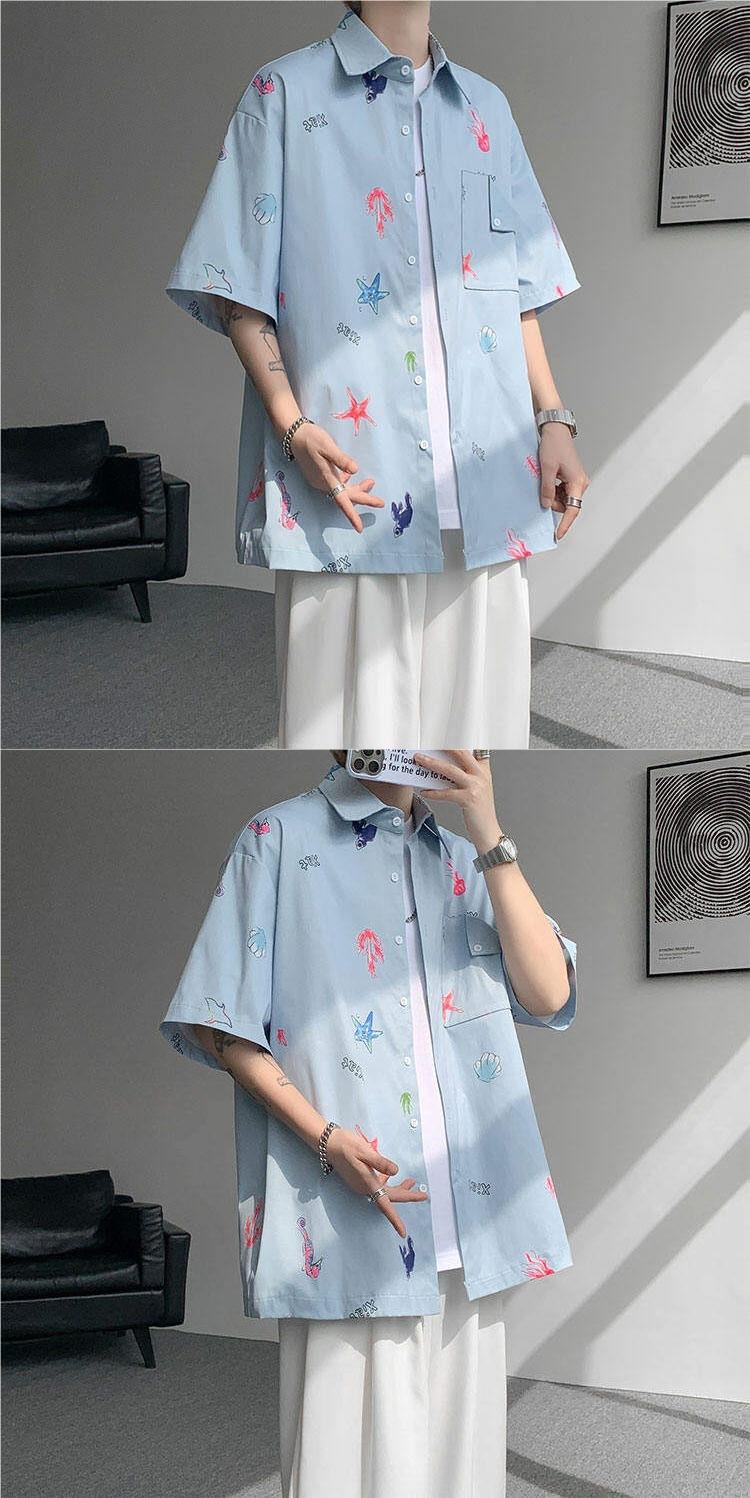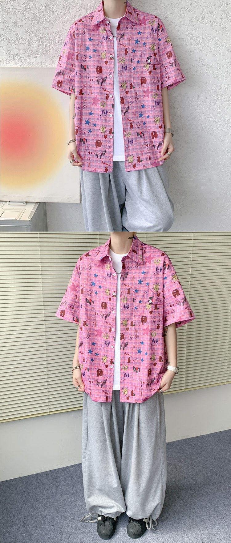 2025 Nueva Camisa de Verano para Hombre de Manga Corta Camisa Estampada Camisa Casual Delgada de Seda de Hielo para Hombre Manga Corta Holgada Talla Grande