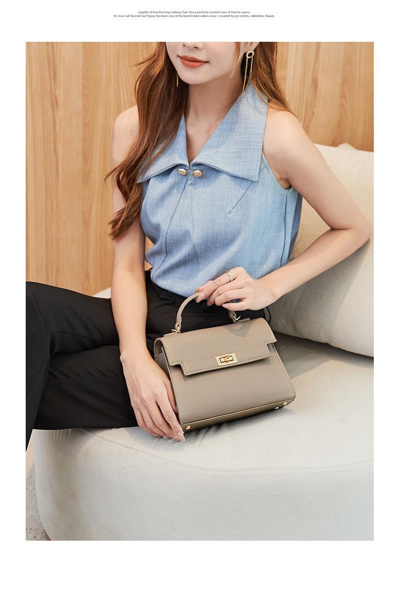 Bolso de Mujer 2024 Verano Nuevo Bolsa Lonchera Bolso Kelly Grano Lichi Bolso de Mano Simple Versátil Un Hombro Bandolera