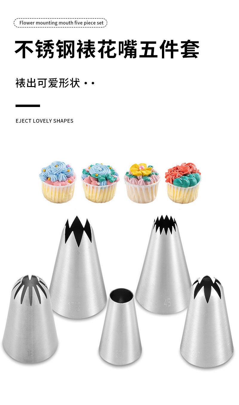 Juego de 5 Boquillas Decorativas de Acero Inoxidable 304 Grandes Sin Costura para Pastel Galleta Crema Herramienta para Hornear Decorar