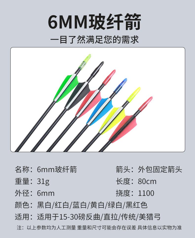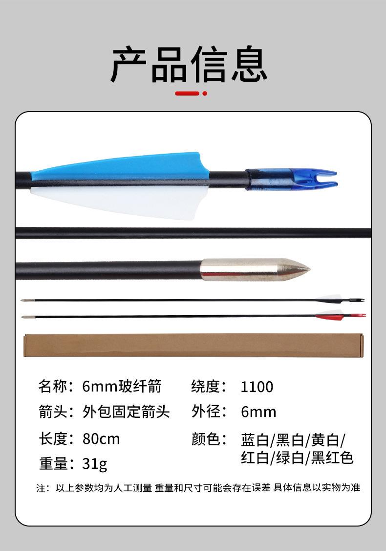 6mm fiberglass arrow blue and white feather, 6mm fiberglass arrow black and white feather, 6mm fiberglass arro...