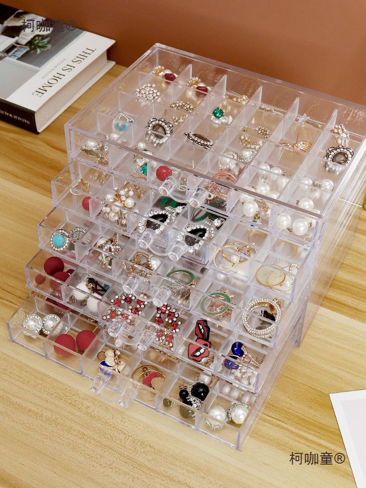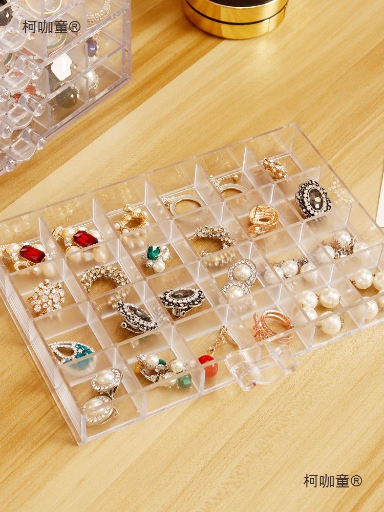 1 layer of six-compartment drawer (can enlarge earrings) + 1 layer of 24-compartment drawer + 1 layer of empty drawer