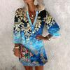 2024 estación independiente deseo Amazon primavera cuello en V encaje manga larga estampado cintura vestido ropa de mujer