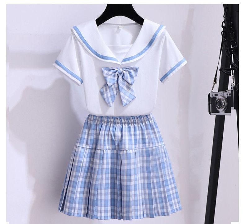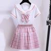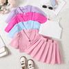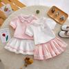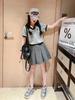 Traje de Falda para Niñas Verano Nuevo Estilo Occidental Popular en Internet para Niños Falda Corta de Manga Corta Ropa para Niños Traje de Dos Piezas Estilo Universitario para Niña