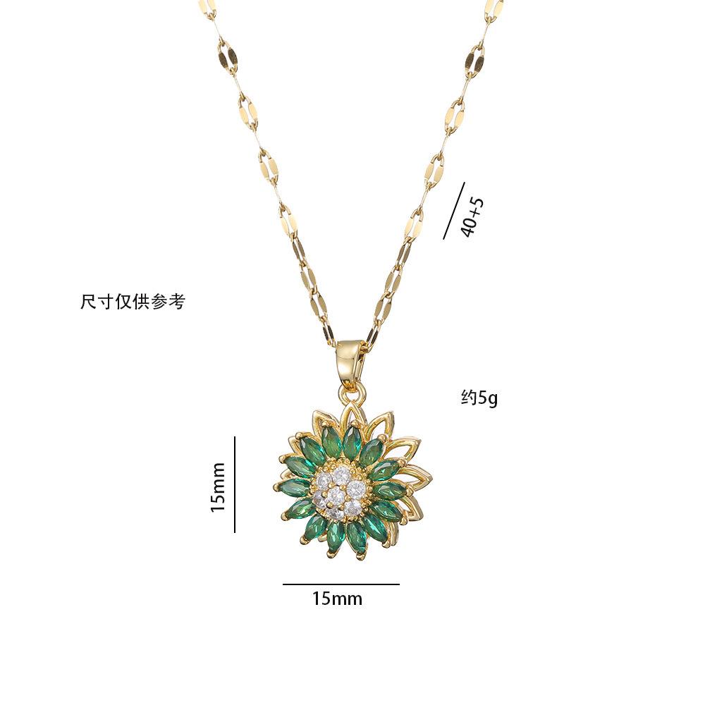Collar femenino japonés coreano transfronterizo con microconjunto de circonitas esmeralda girasol traje giratorio cadena de clavícula pulsera al por mayor