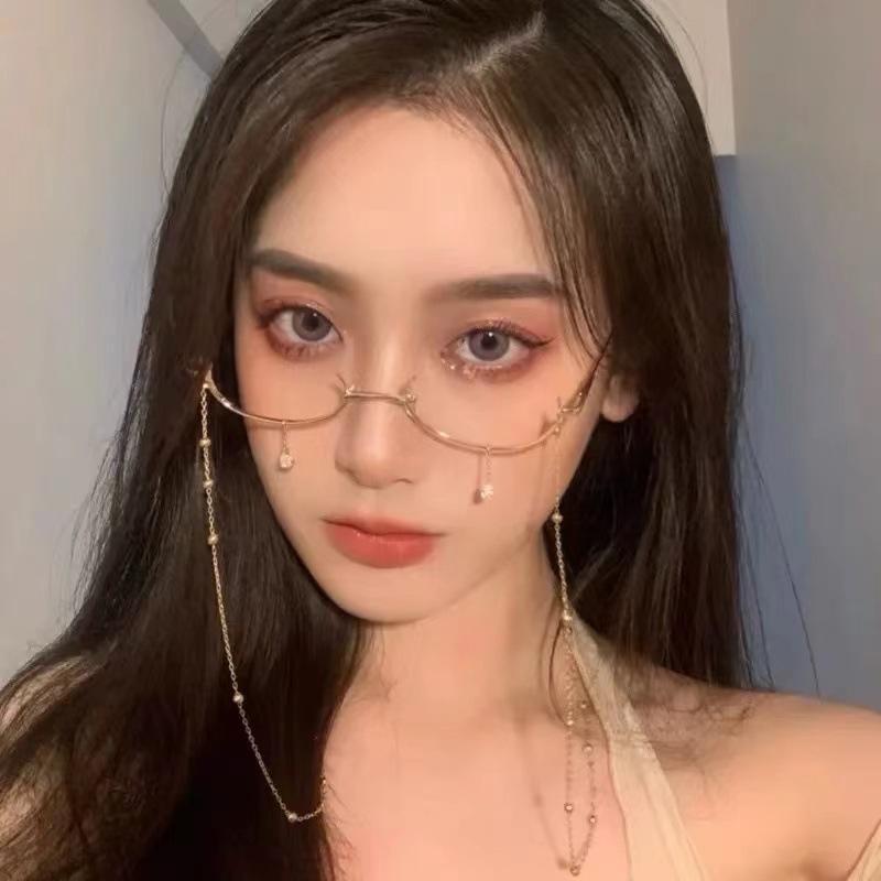 Anteojos de Media Montura de Estilo Japonés de Moda para Estilismo de Fotos Ins Mori Girl Anteojos Decorativos