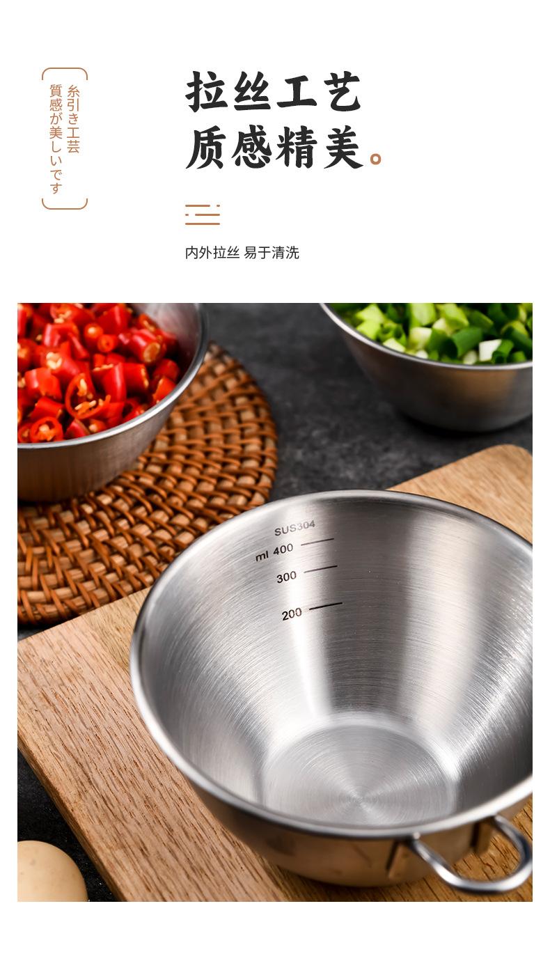 Cuenca de cocina de acero inoxidable 304 con escala tazón para huevos cocina fruta horneado mini escurridor lavado de verduras arroz artefacto