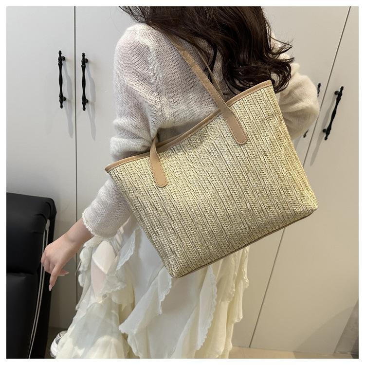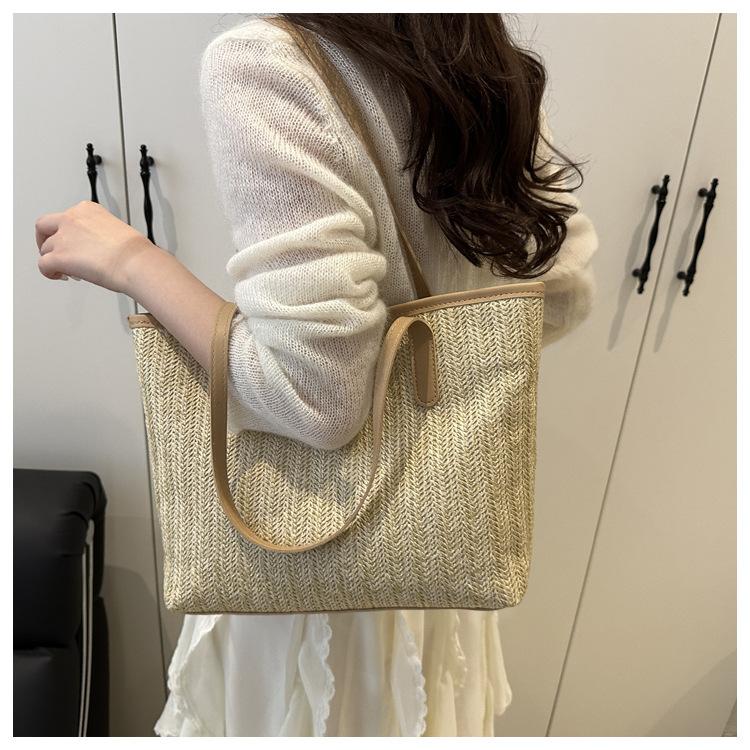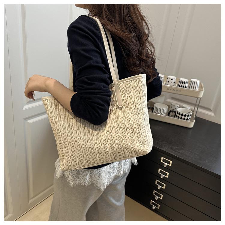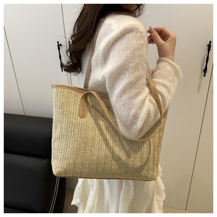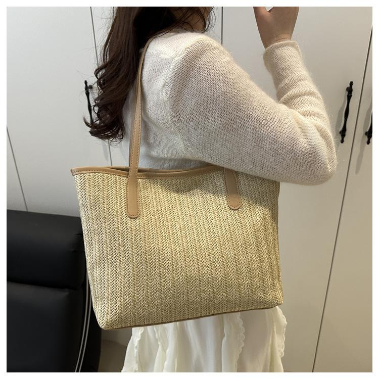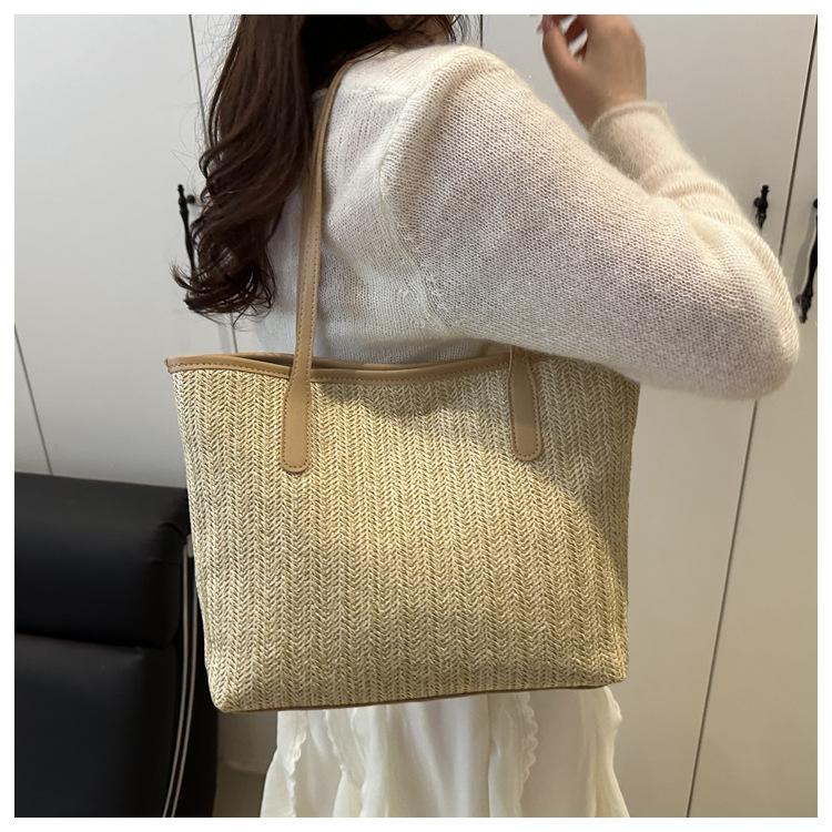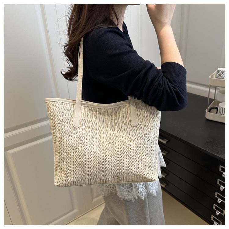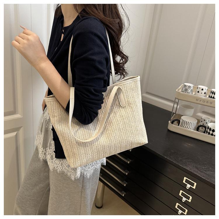 Compra Bolso de Paja Casual de Gran Capacidad para Mujer 2025 Nuevo Bolso de Hombro Versátil y Elegante para Viajar Popular Bolso Tote Tejido al por mayor en Joom.pro