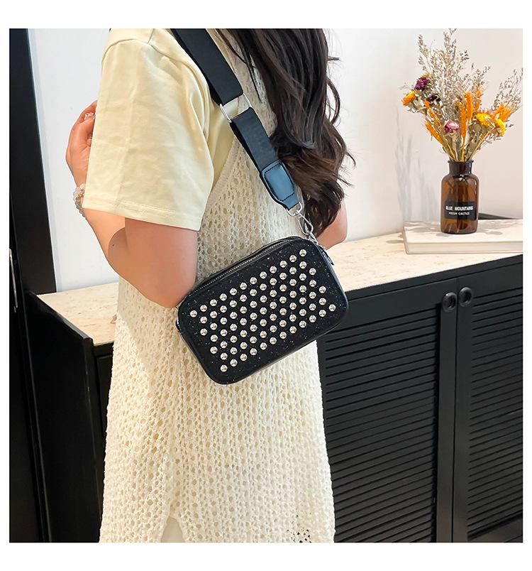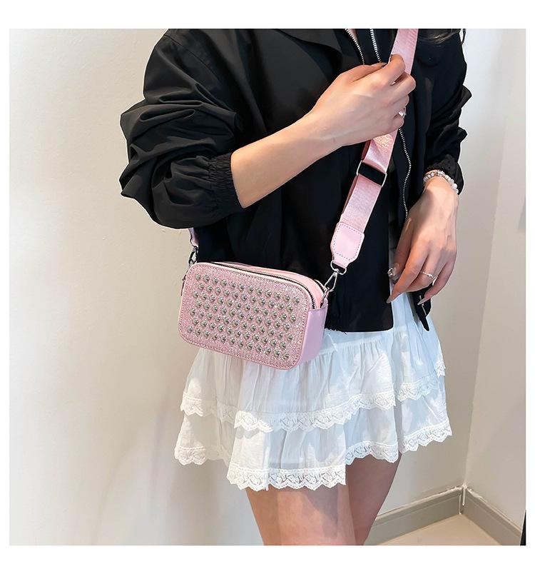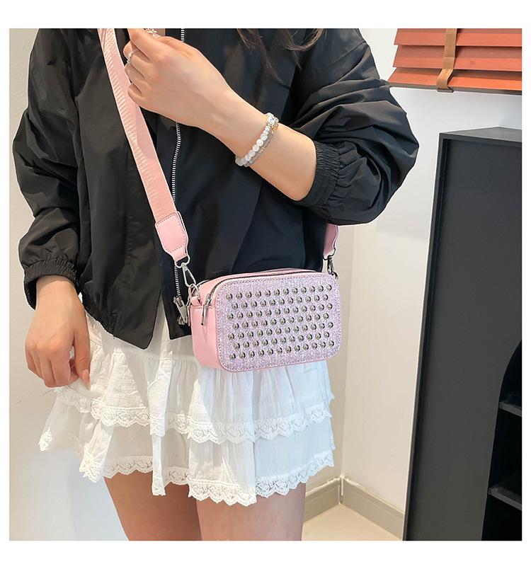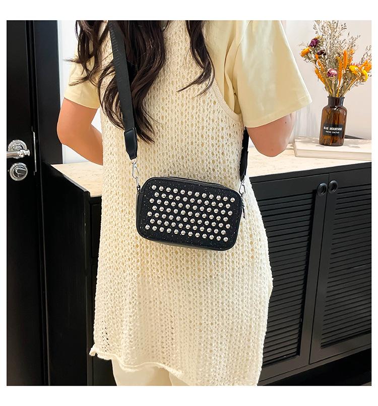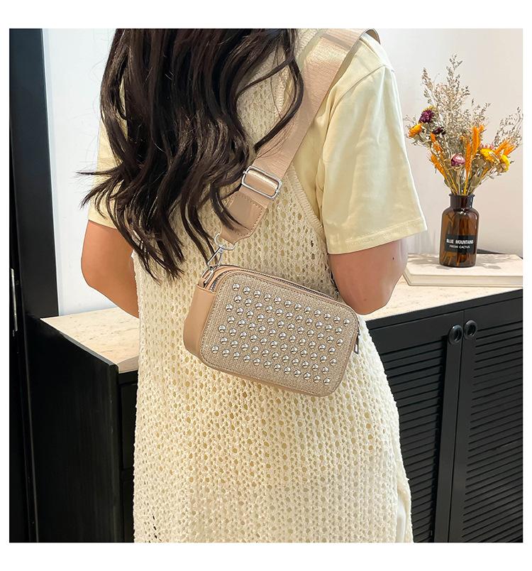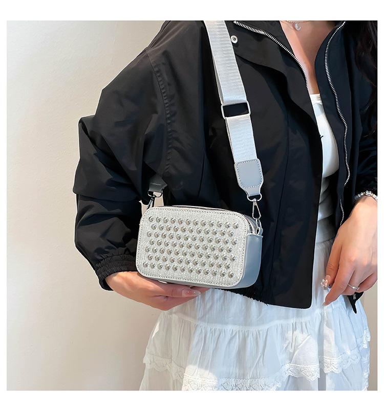 Moda Retro Bolso Cuadrado Pequeño con Diamantes Combinable 2025 Nuevo Bolso de Hombro Cruzado para Teléfono Elegante de Gama Alta para Mujer