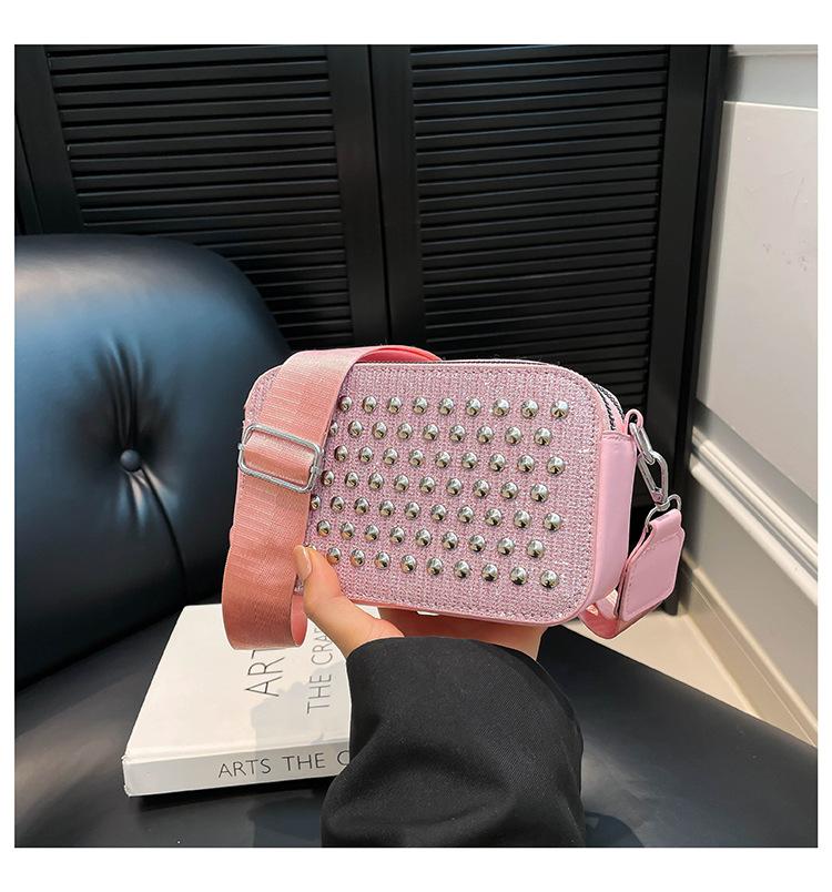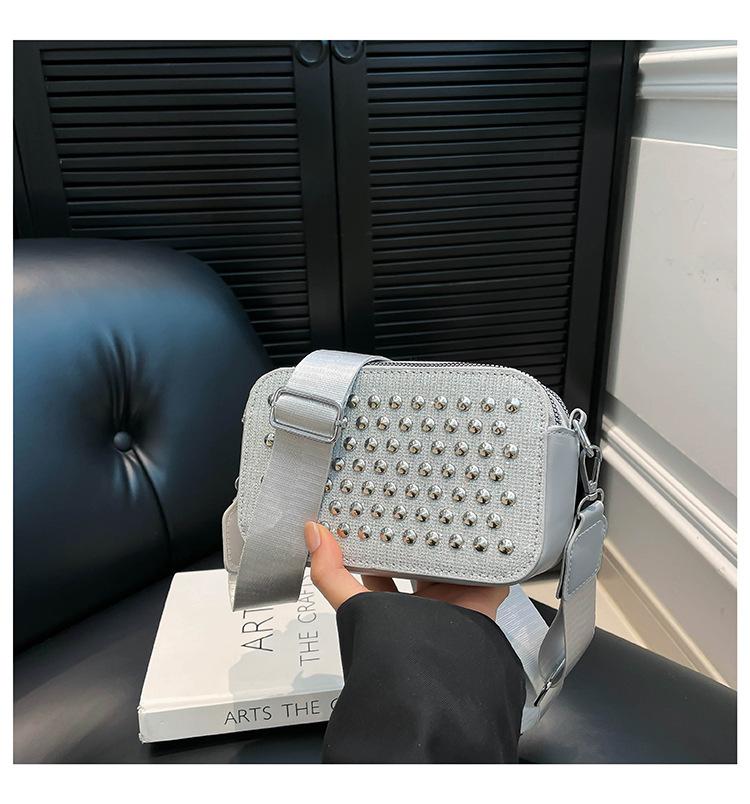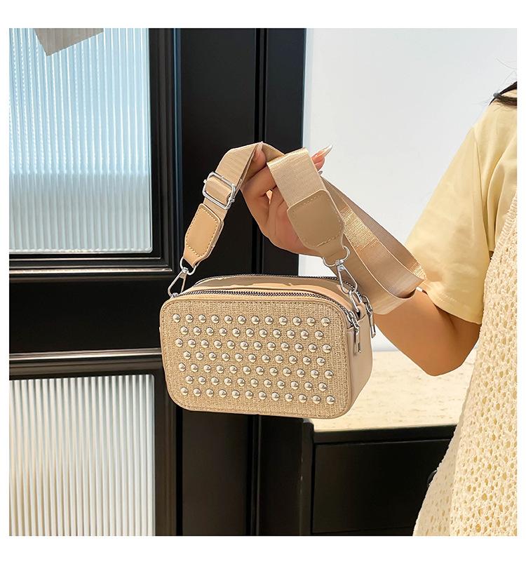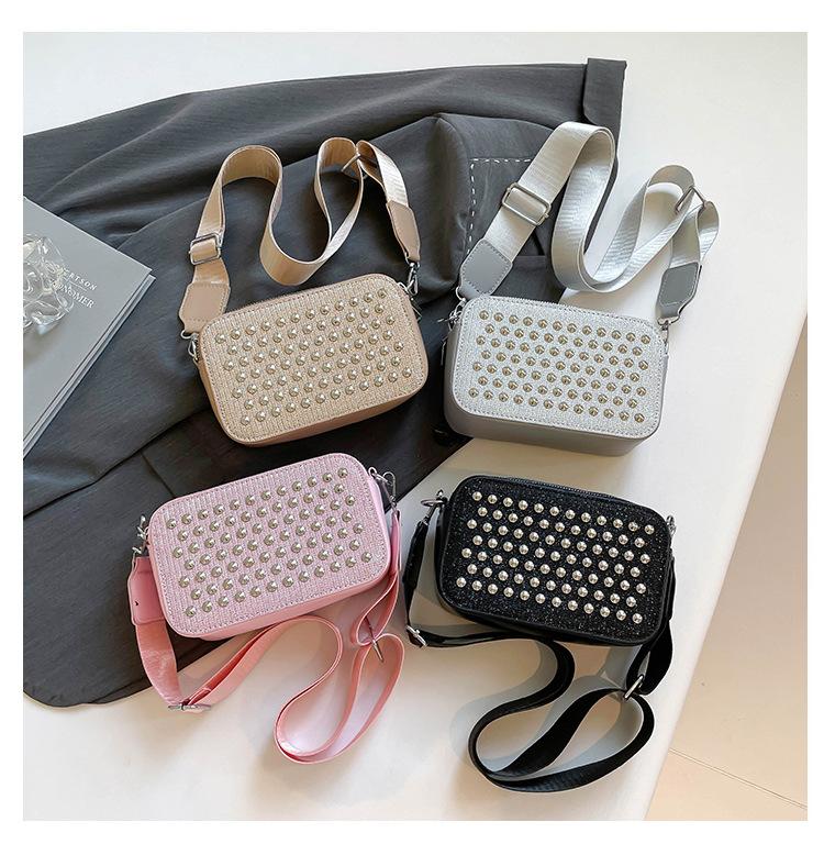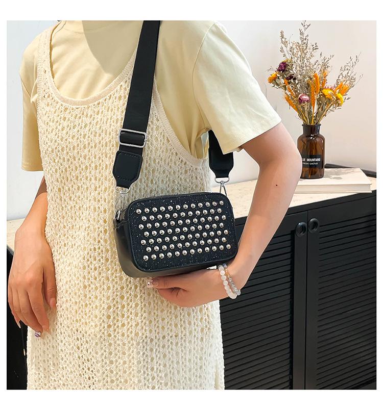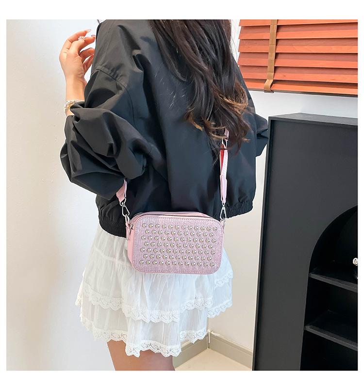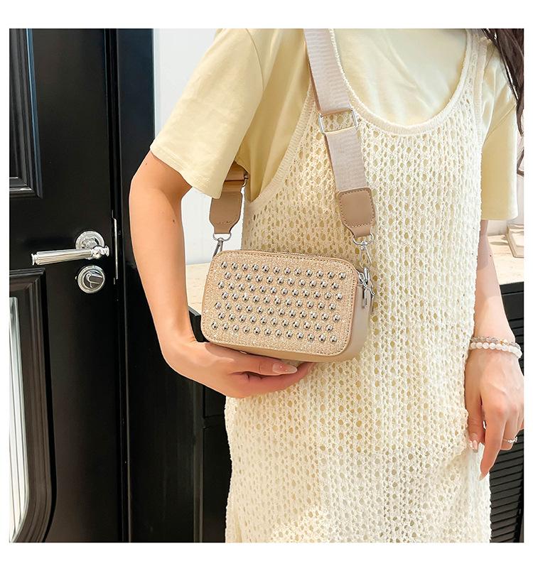Moda Retro Bolso Cuadrado Pequeño con Diamantes Combinable 2025 Nuevo Bolso de Hombro Cruzado para Teléfono Elegante de Gama Alta para Mujer