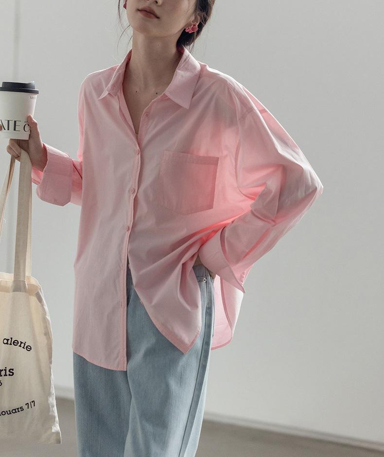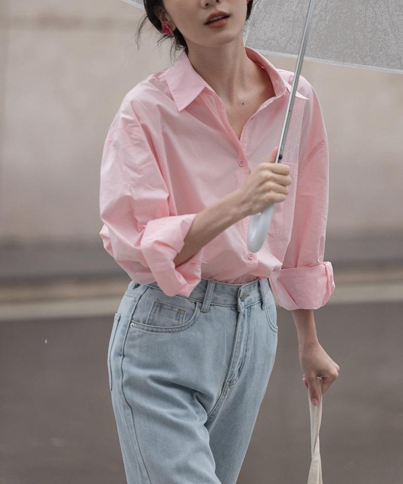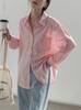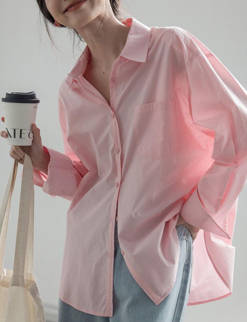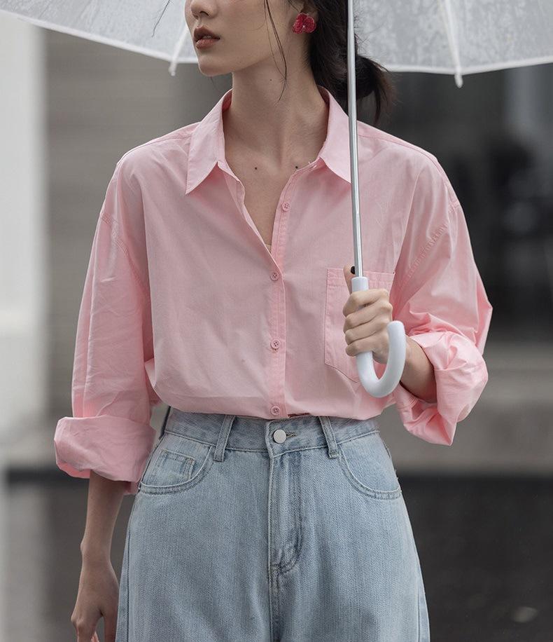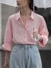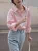 Camisa Rosa para Mujer Top de Manga Larga Camisa Abrigo Blanco Azul Diseño Francés Sentido Nicho Elegante Primavera y Otoño