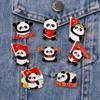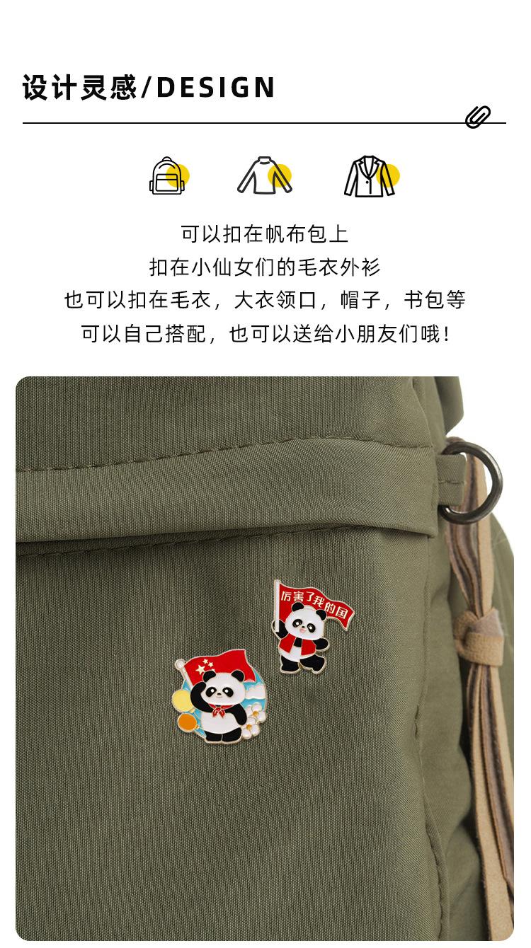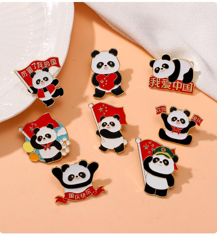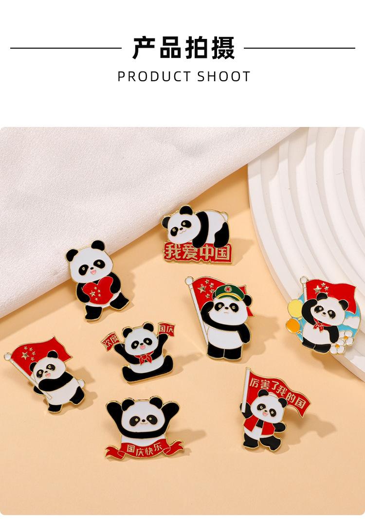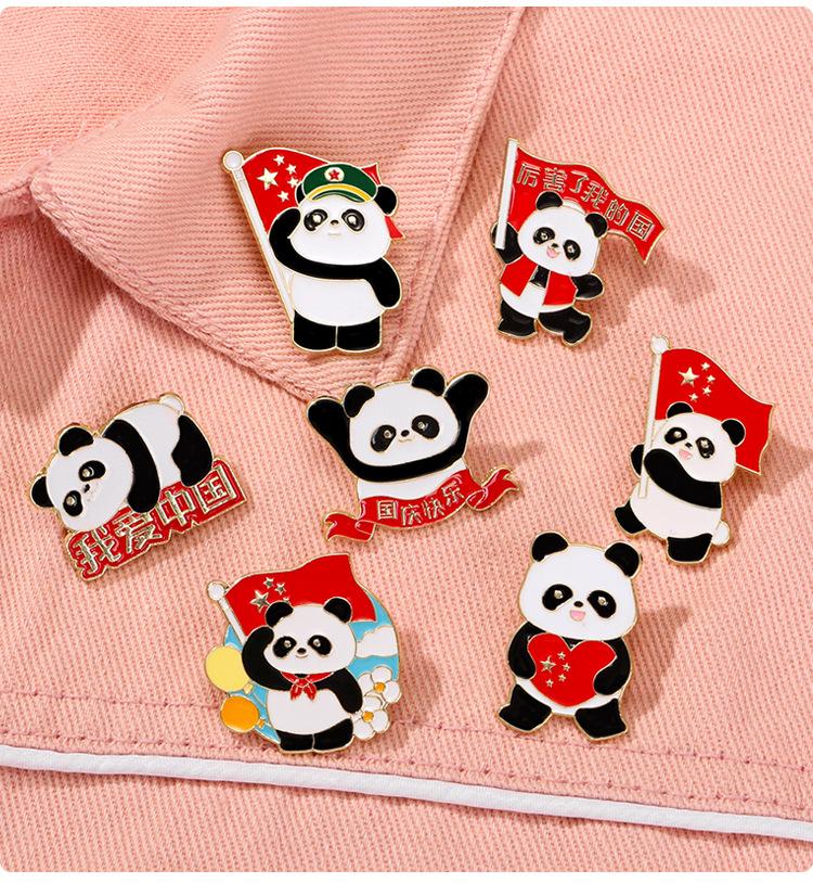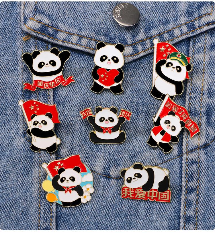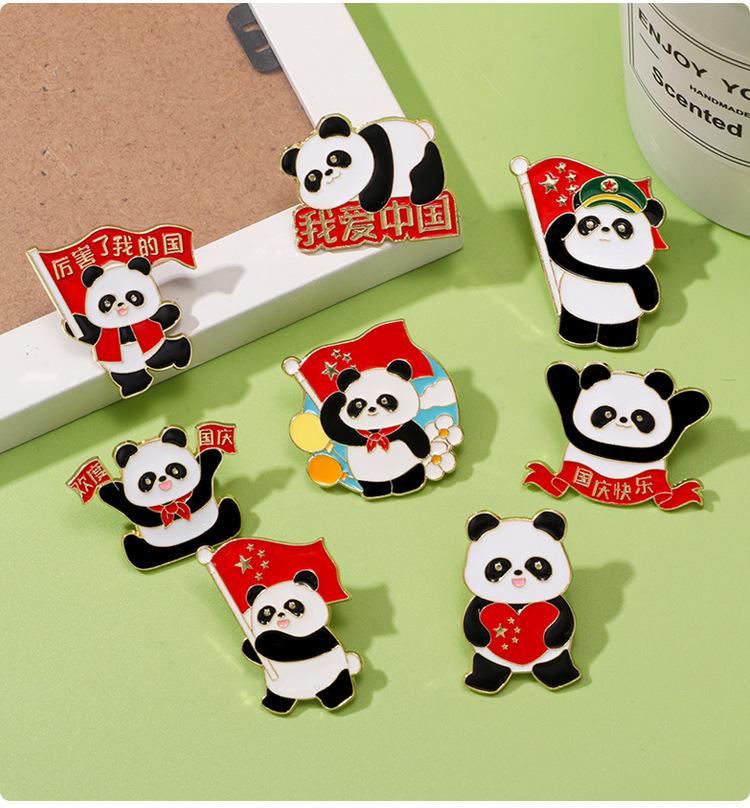 Medalla Conmemorativa del Día Nacional Bandera Roja de Cinco Estrellas Patriótico Panda Ropa Literaria Decoración de Mochila Escolar Aleación Gota de Aceite Broche Insignia
