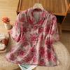 2025 Nueva Moda de Verano Cuello Redondo Manga Corta Bordado Floral Camisa Tops para Mujer