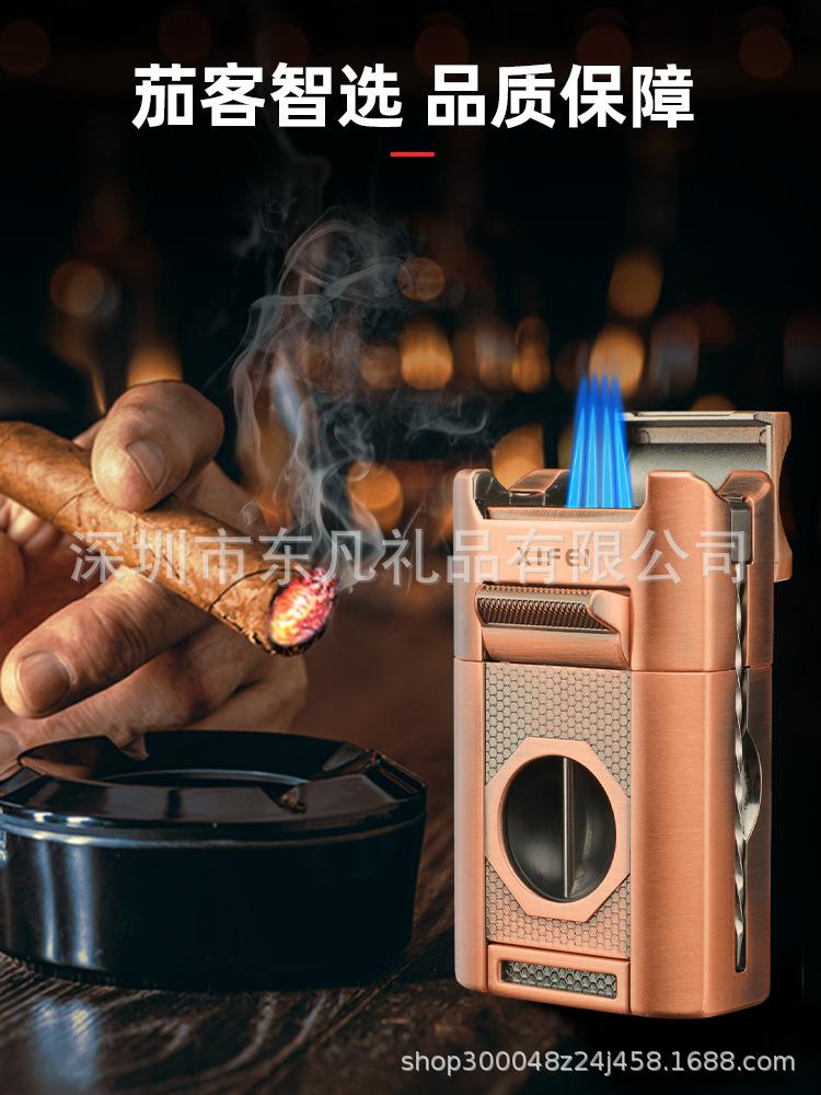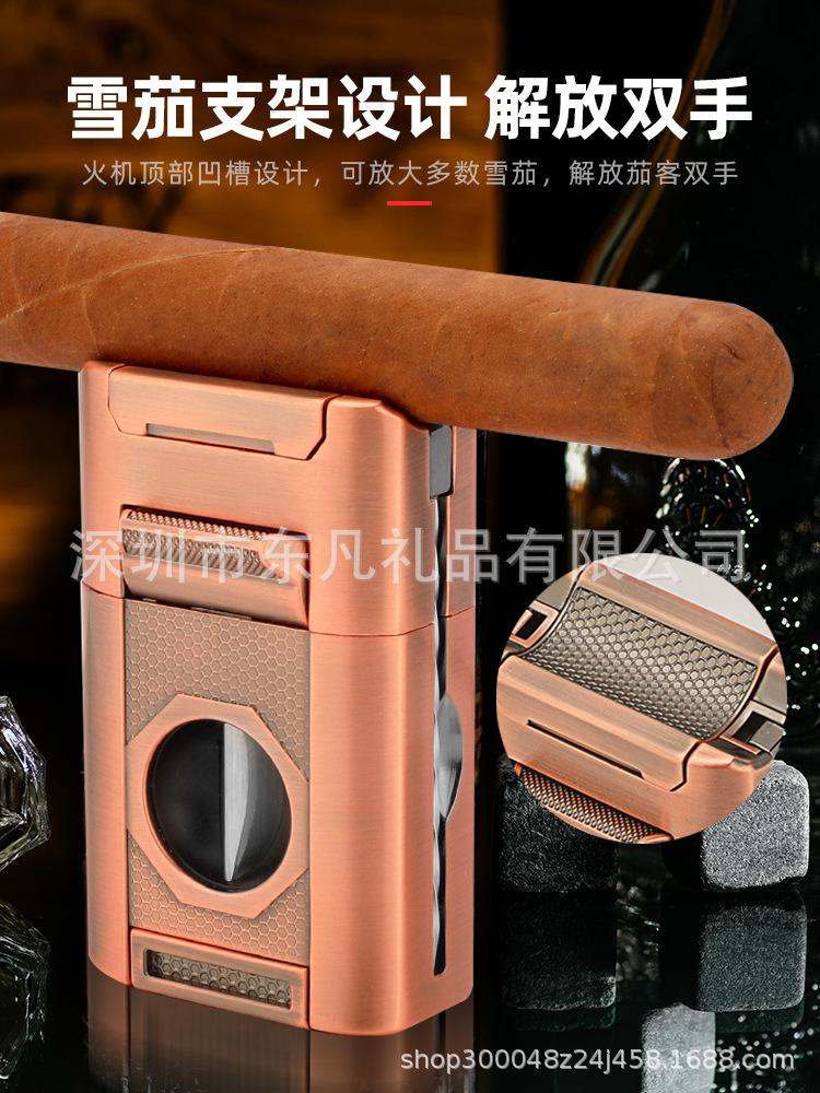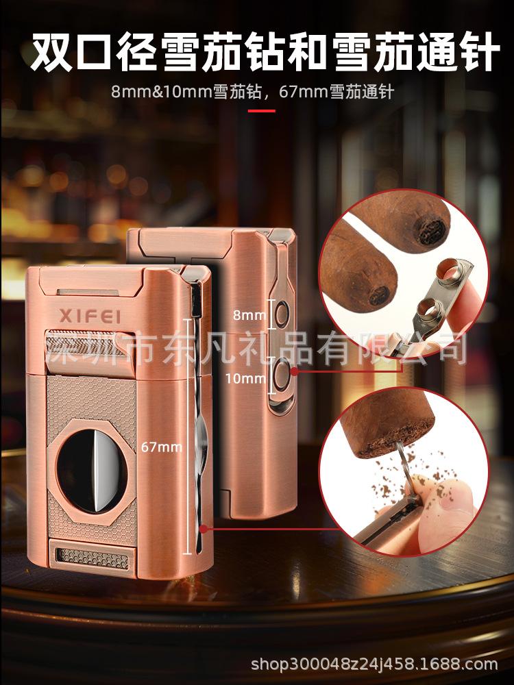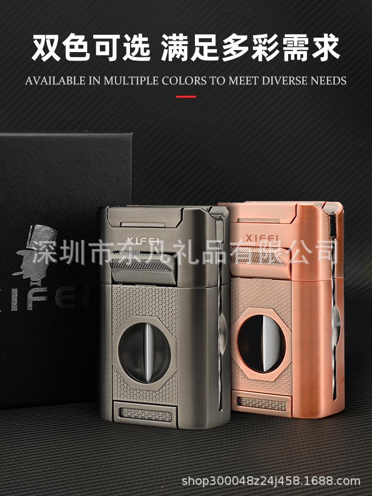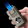 Encendedor de Cigarros Tres en Uno, Encendedor Portátil Directo Multifunción, Corte V Aguja Plana, Taladro Integrado de Cuatro Llamas