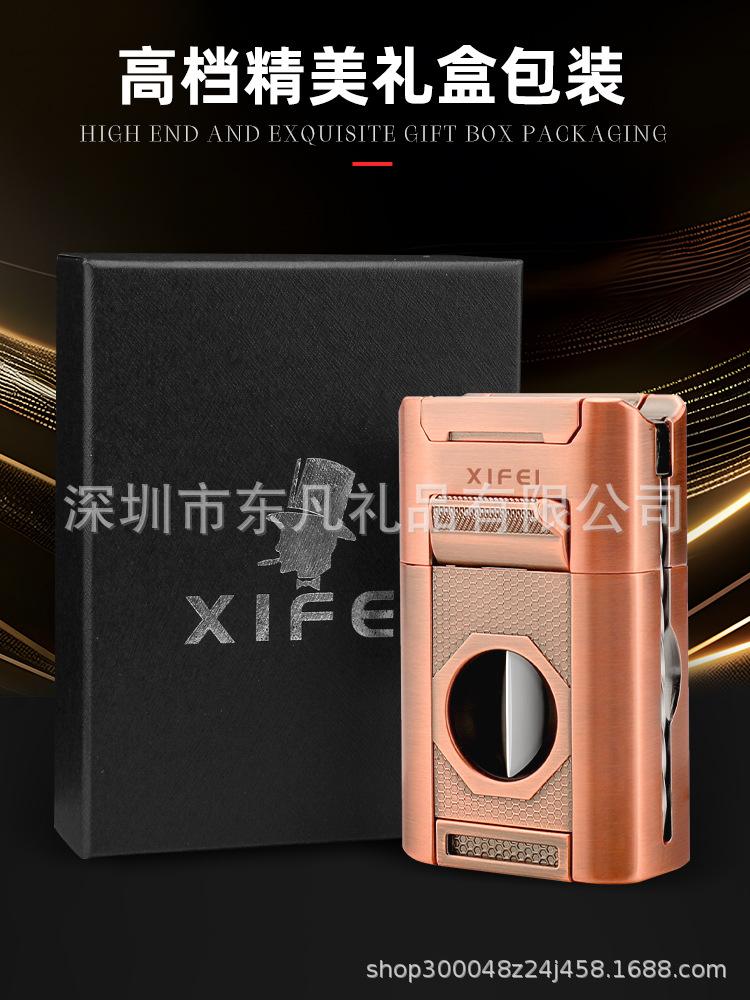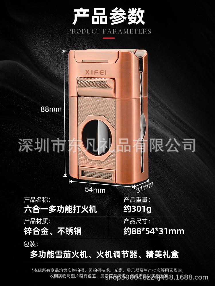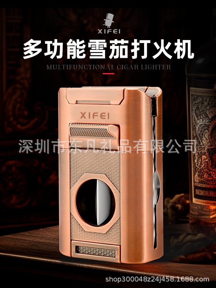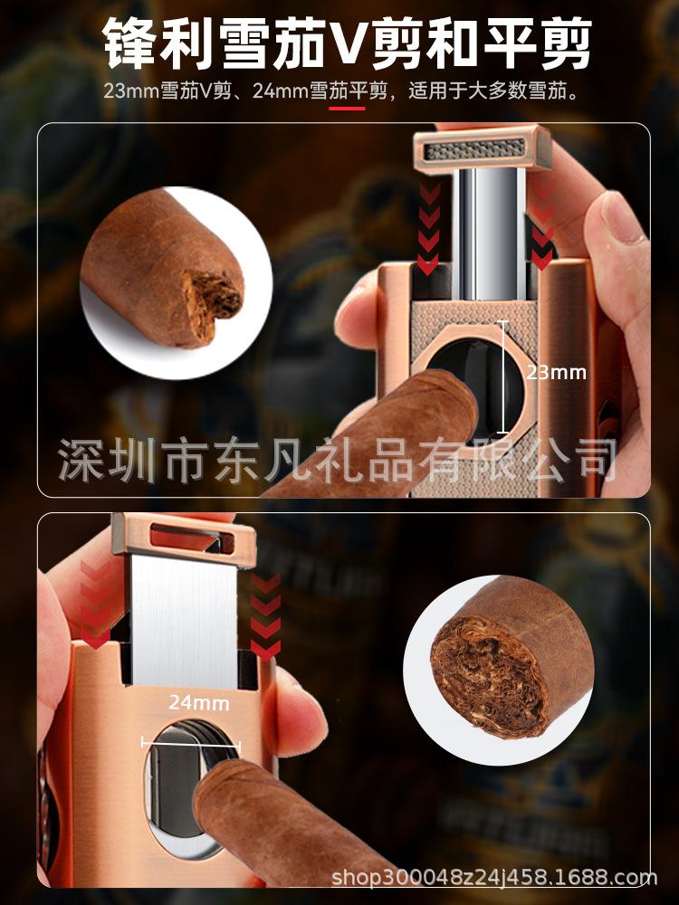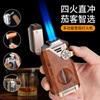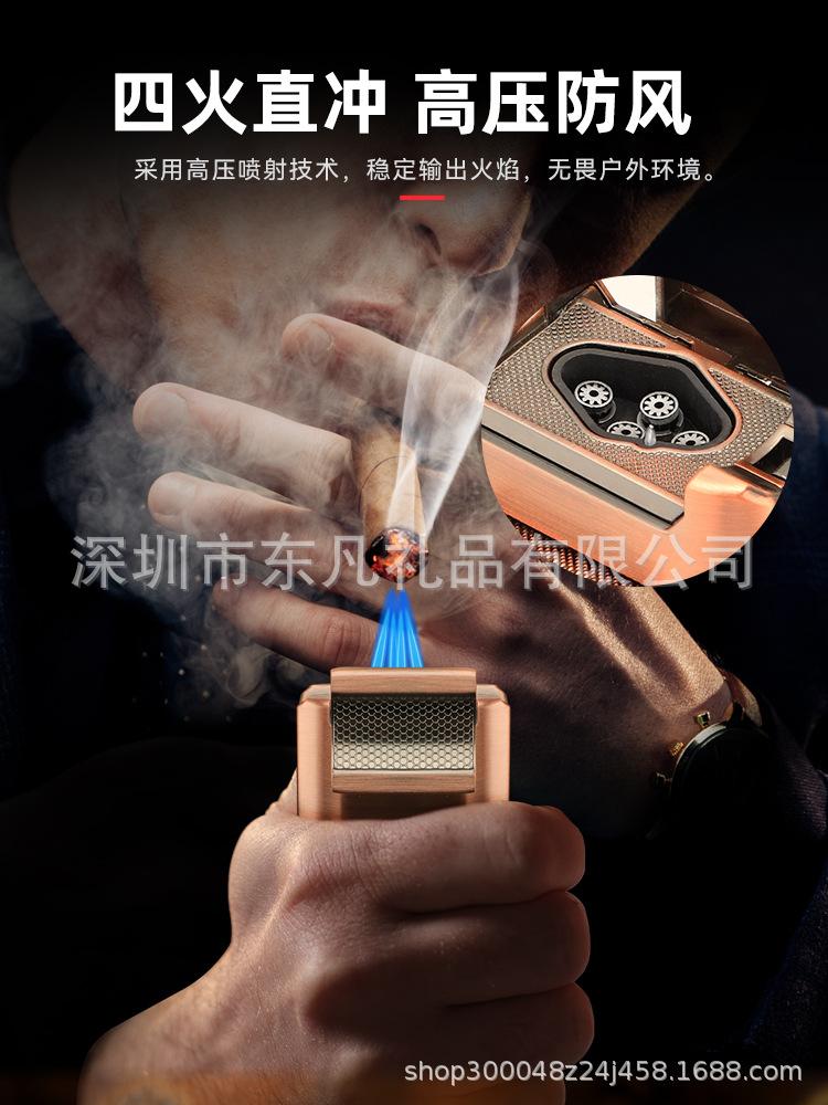 Encendedor de Cigarros Tres en Uno, Encendedor Portátil Directo Multifunción, Corte V Aguja Plana, Taladro Integrado de Cuatro Llamas
