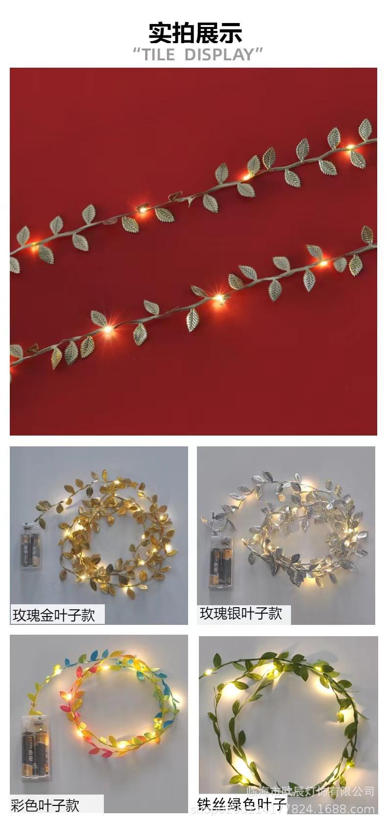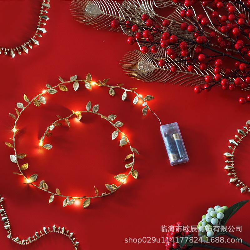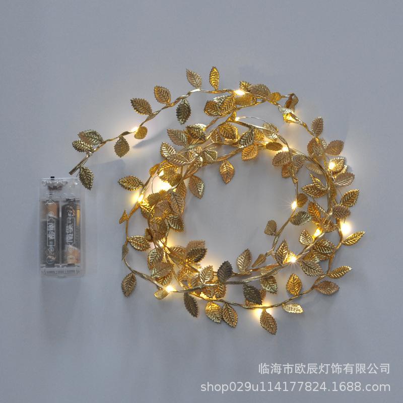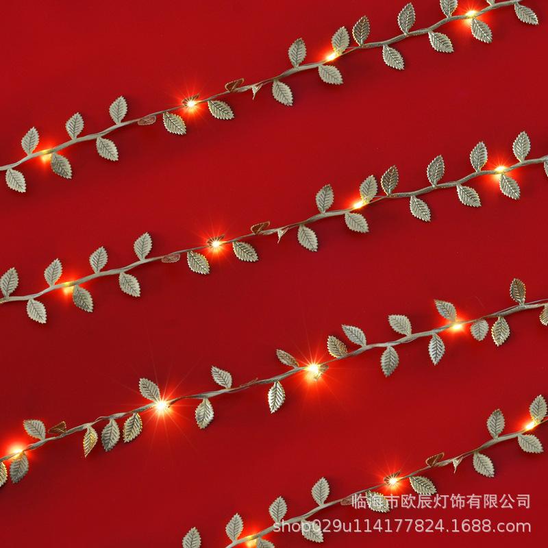 Luces de Cadena de Ratán de Simulación de Hoja Dorada Transfronterizas Luces Decorativas LED de Decoración Navideña para Interior Luces Decorativas de Hoja Plateada