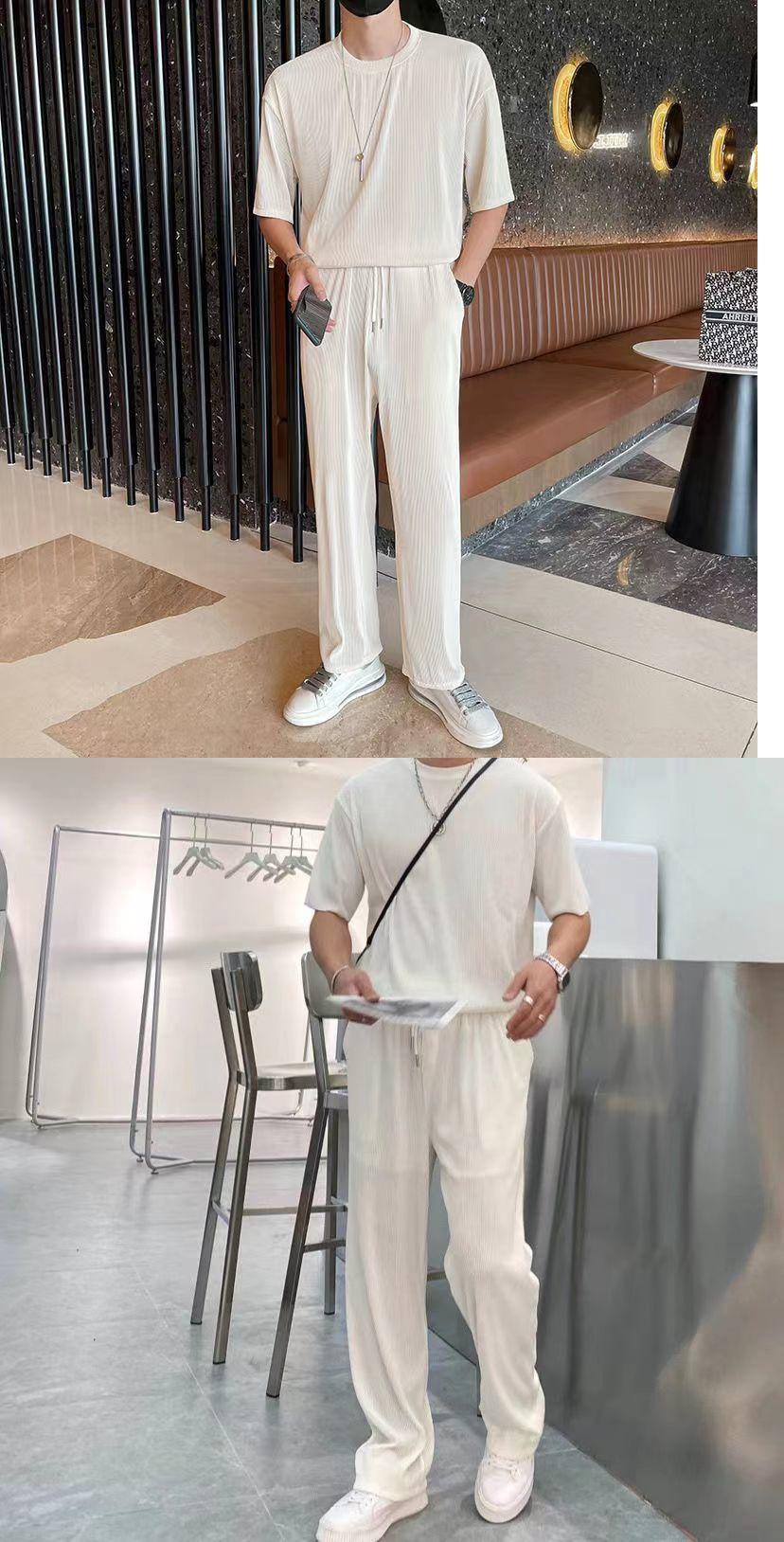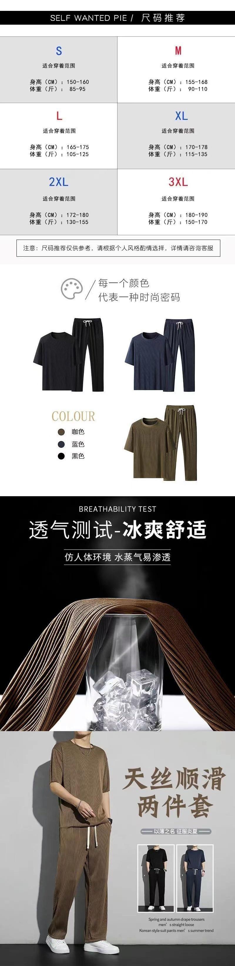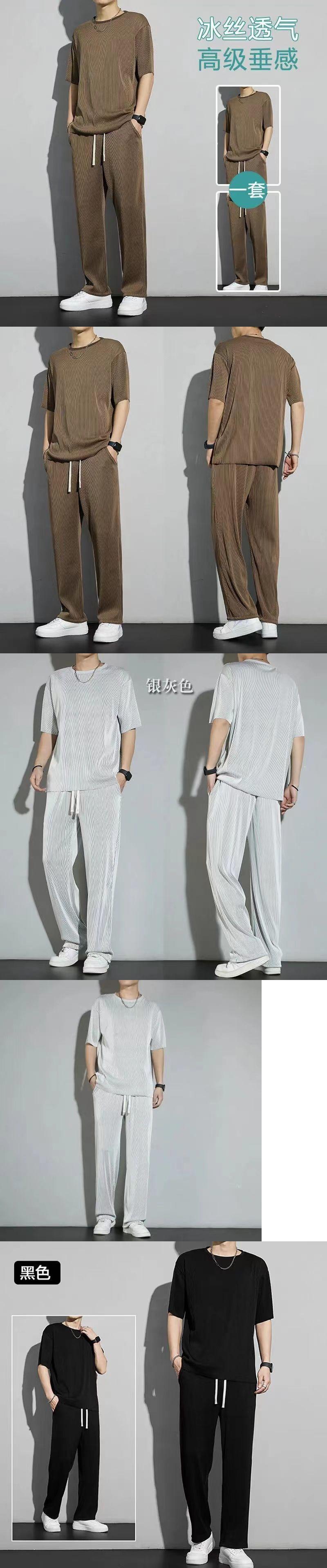 Traje Deportivo de Seda de Hielo para Hombre Verano Delgado Secado Rápido Camiseta de Manga Corta Casual Pantalón Largo Ropa de Media Manga Conjunto