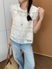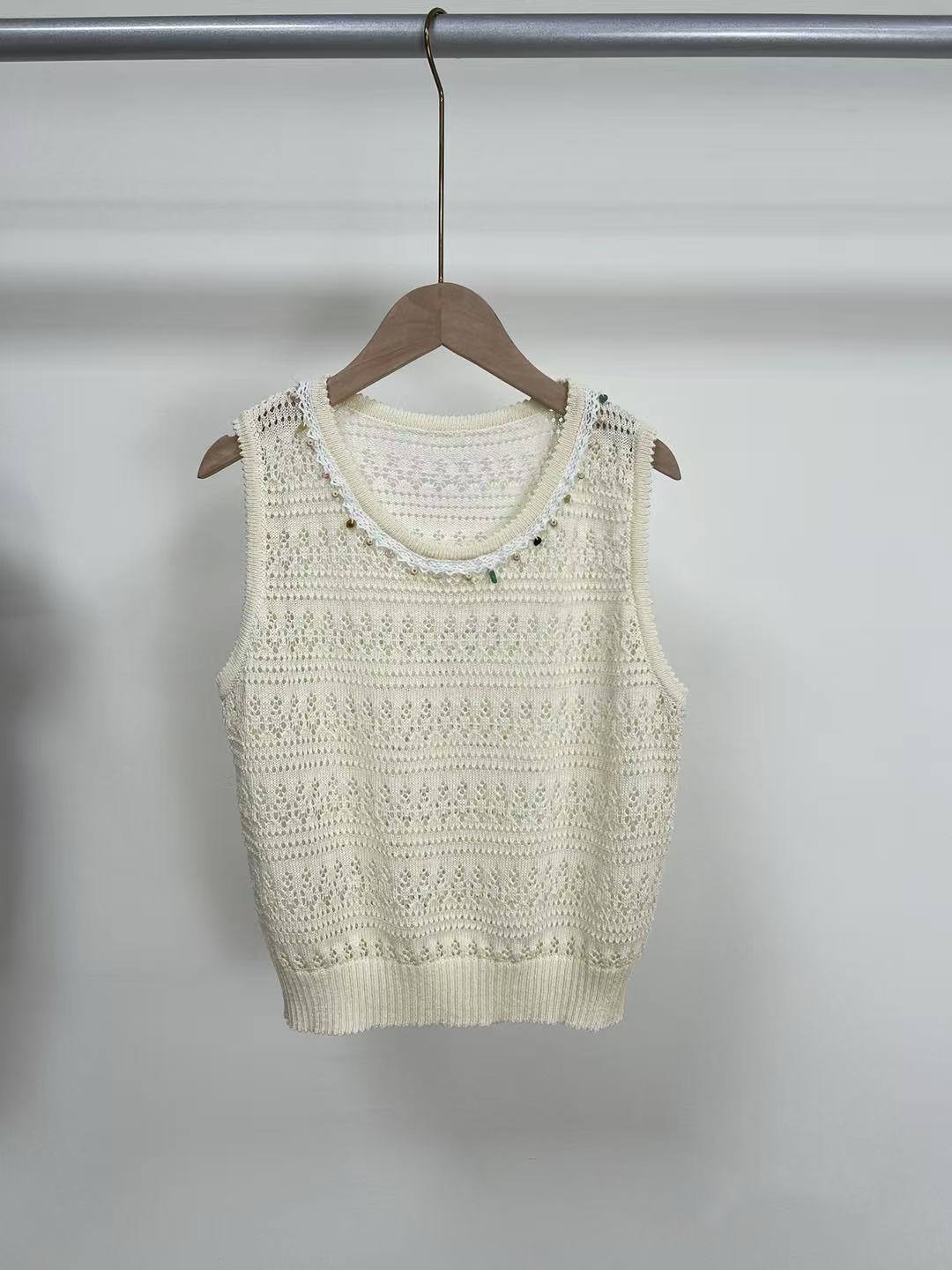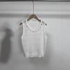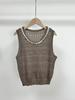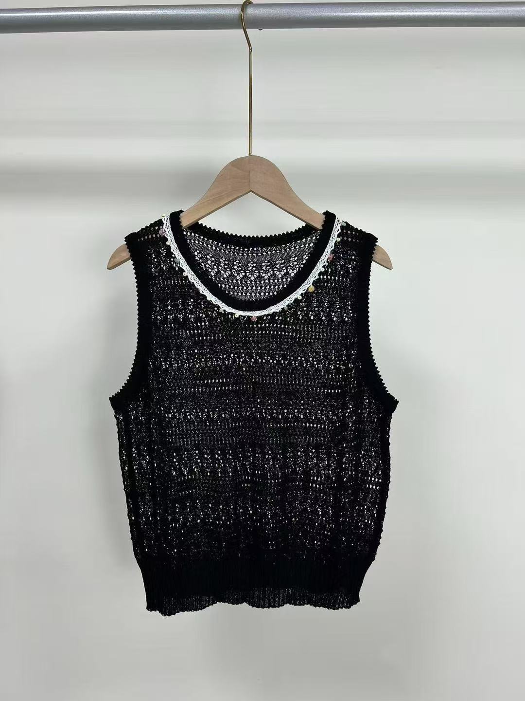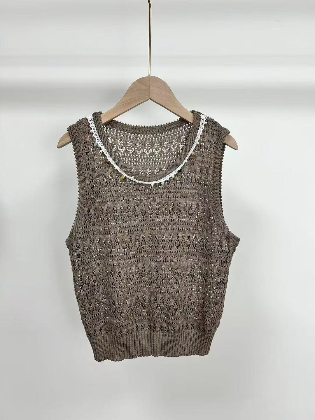 Suéter Chaleco de Crochet de Cuello Redondo Hueco para Mujer Verano 2025 Nuevo Diseño Encaje Empalmado Top sin Mangas