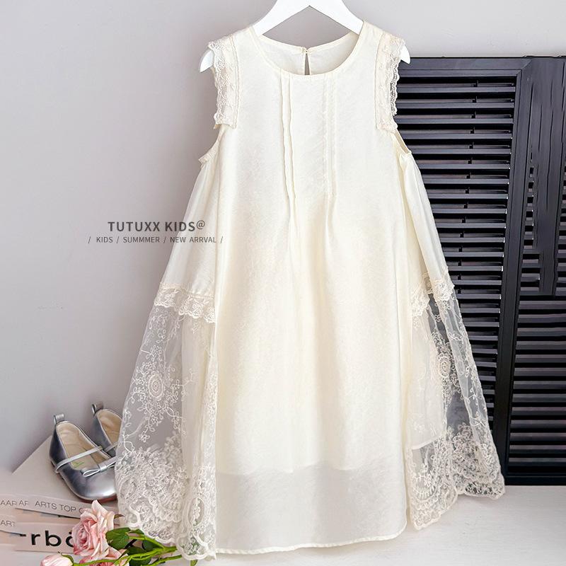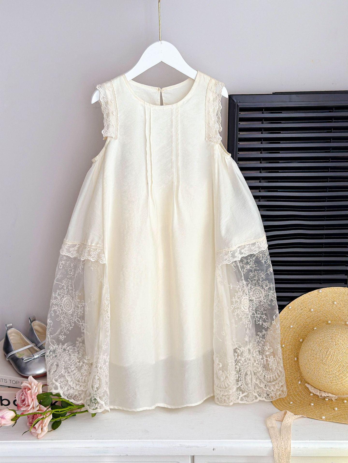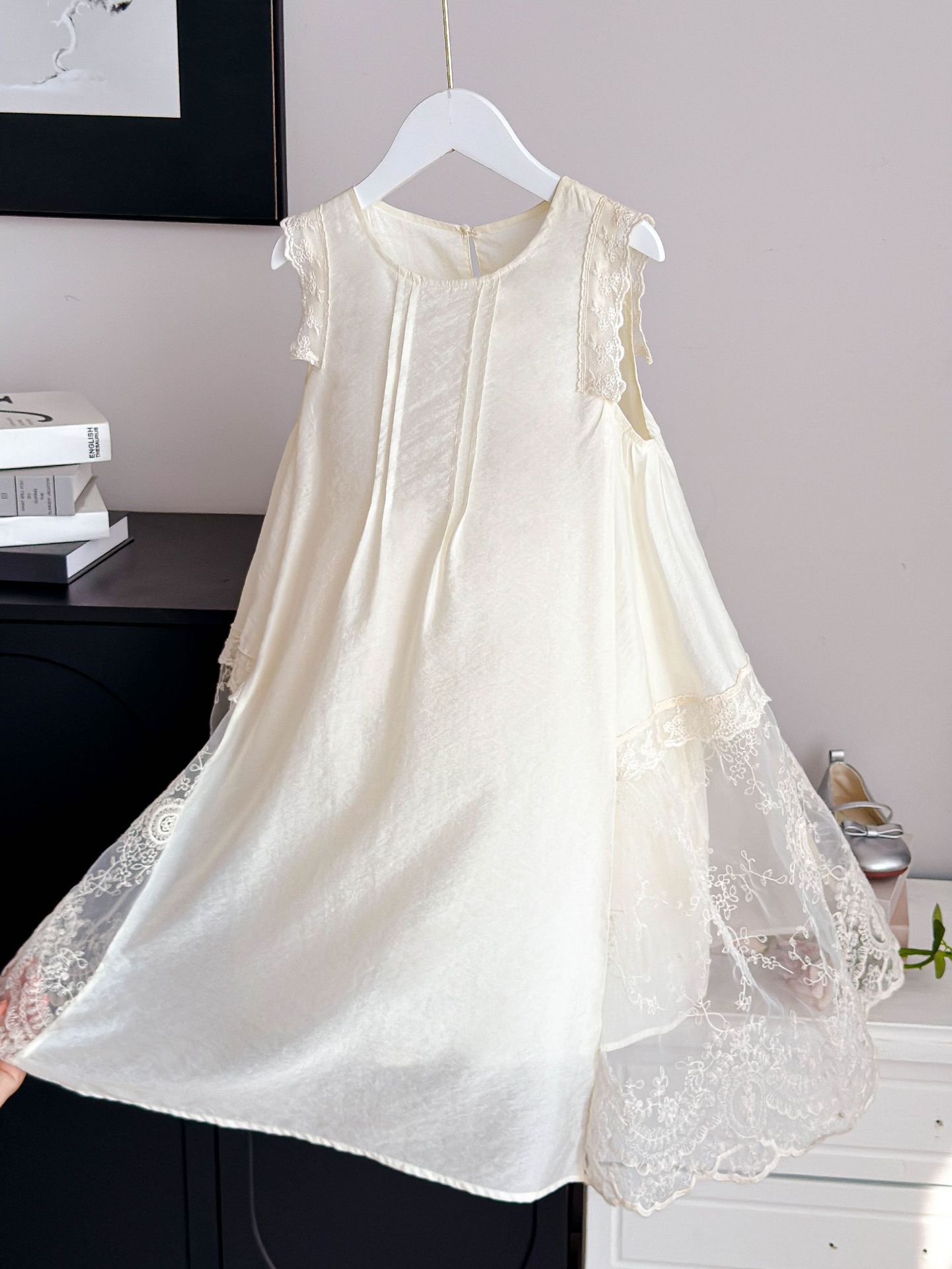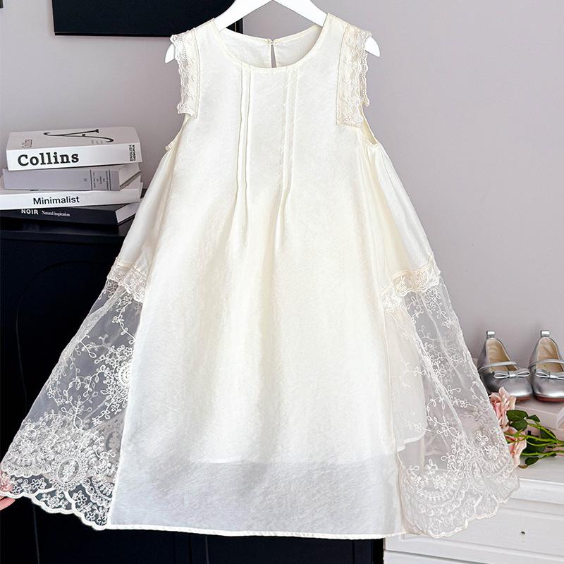 Ropa de Niña Vestido Infantil 2025 Verano Delgado Vestido de Tirantes Vestido Largo Infantil Vestido de Princesa de Encaje