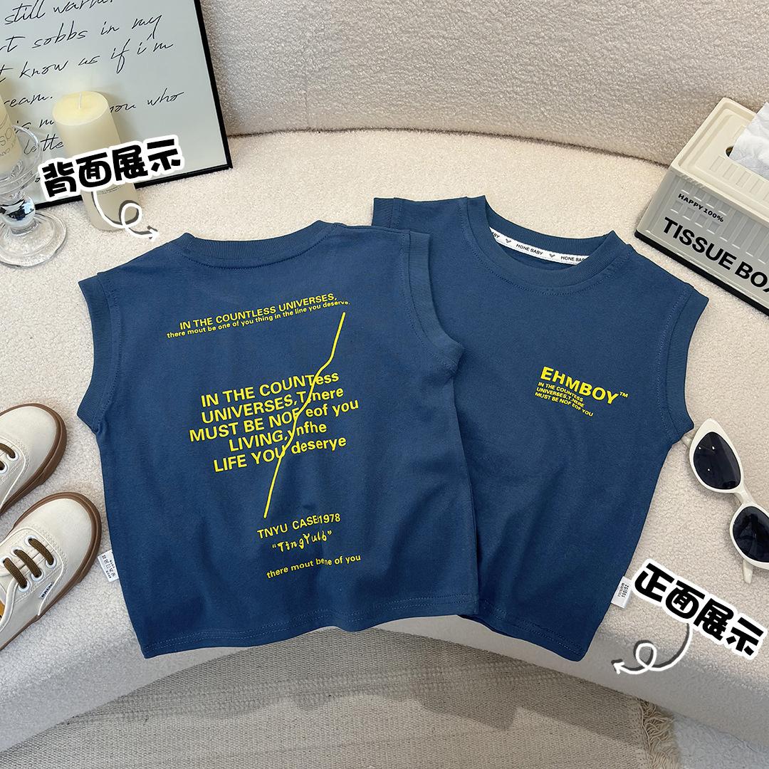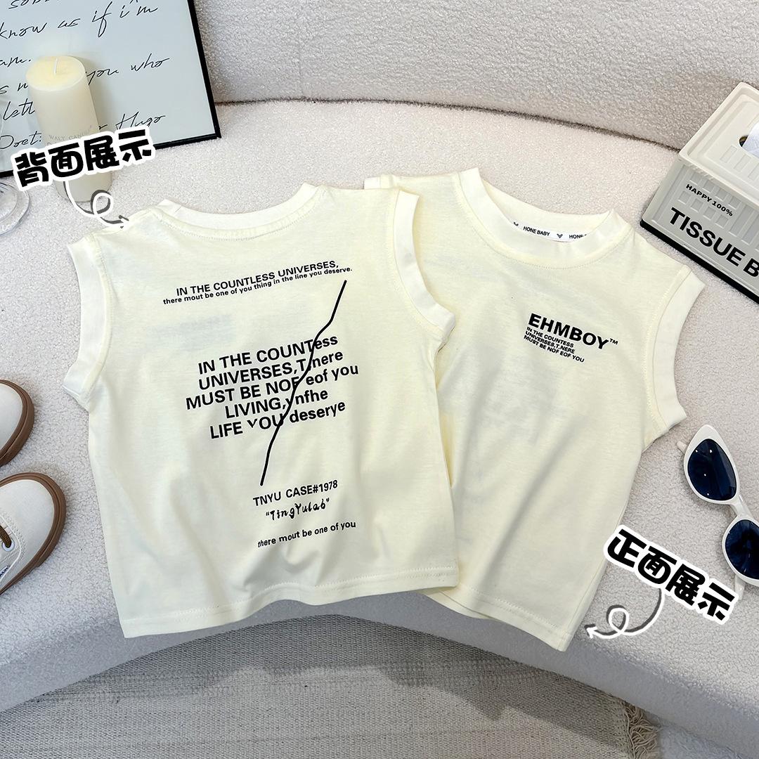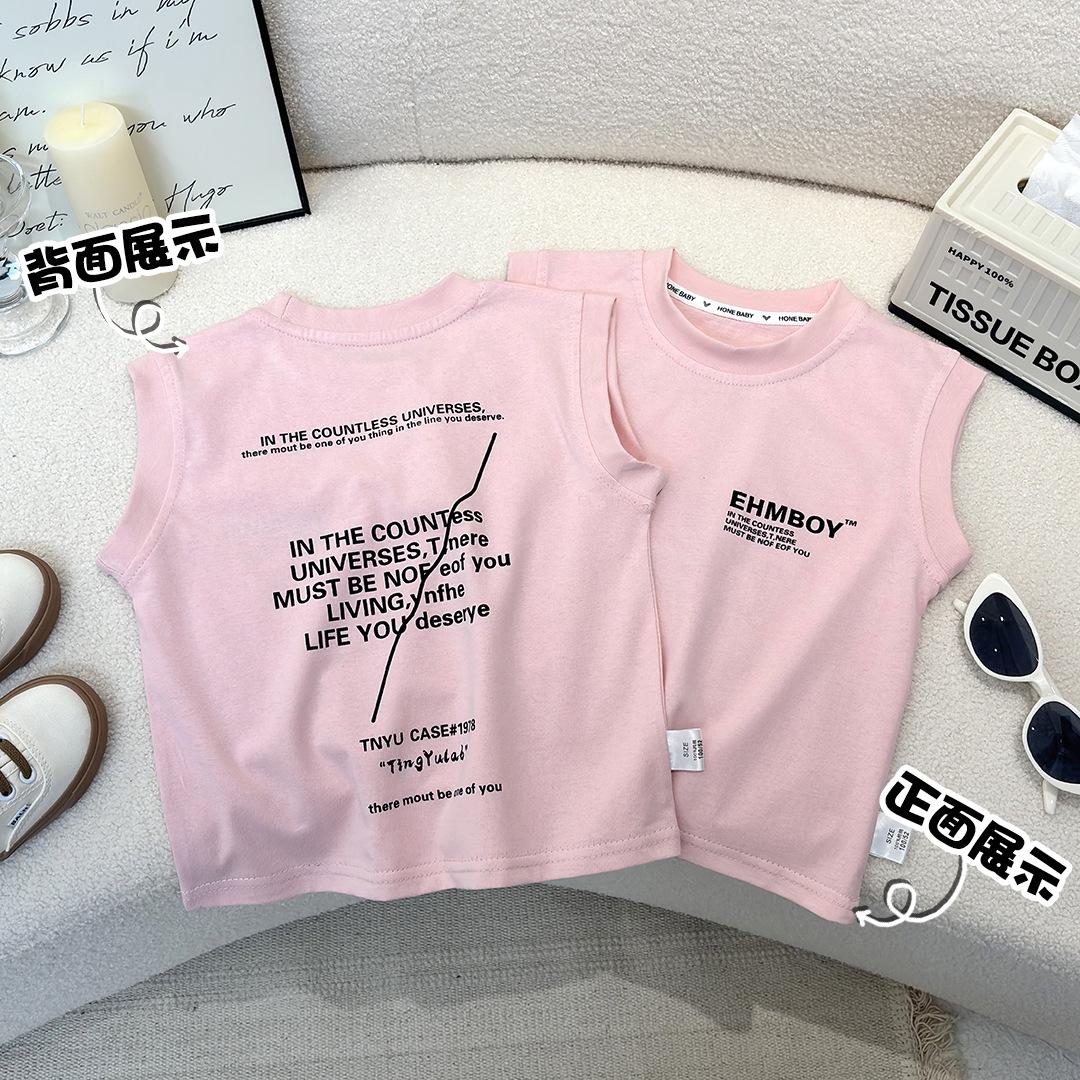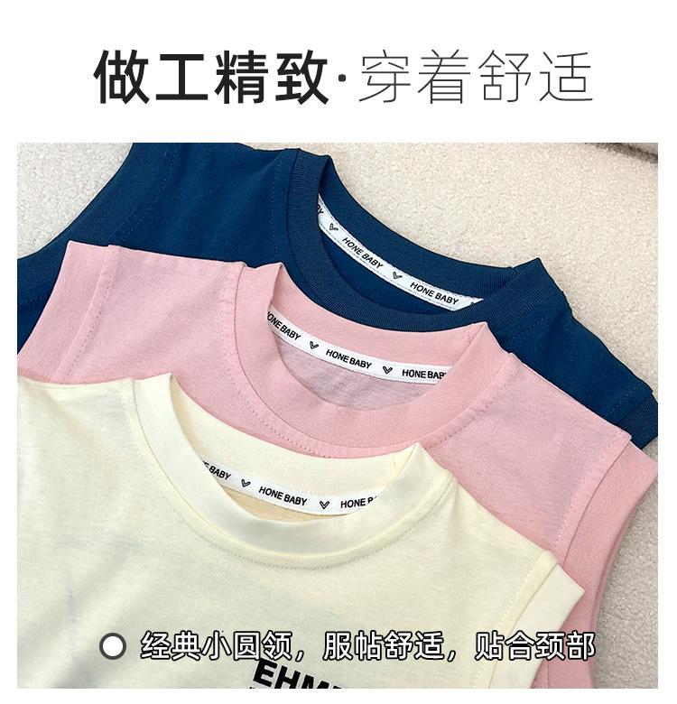 2025 Verano para Niños Top de Algodón Estilo Coreano Chaleco de Hombro Ancho Camiseta sin Mangas Tesoro para Niños y Niñas Combinable