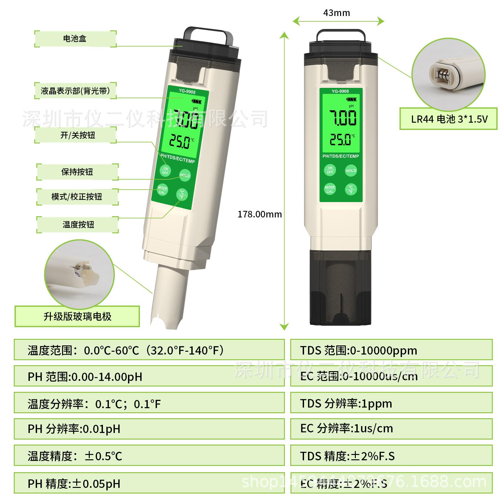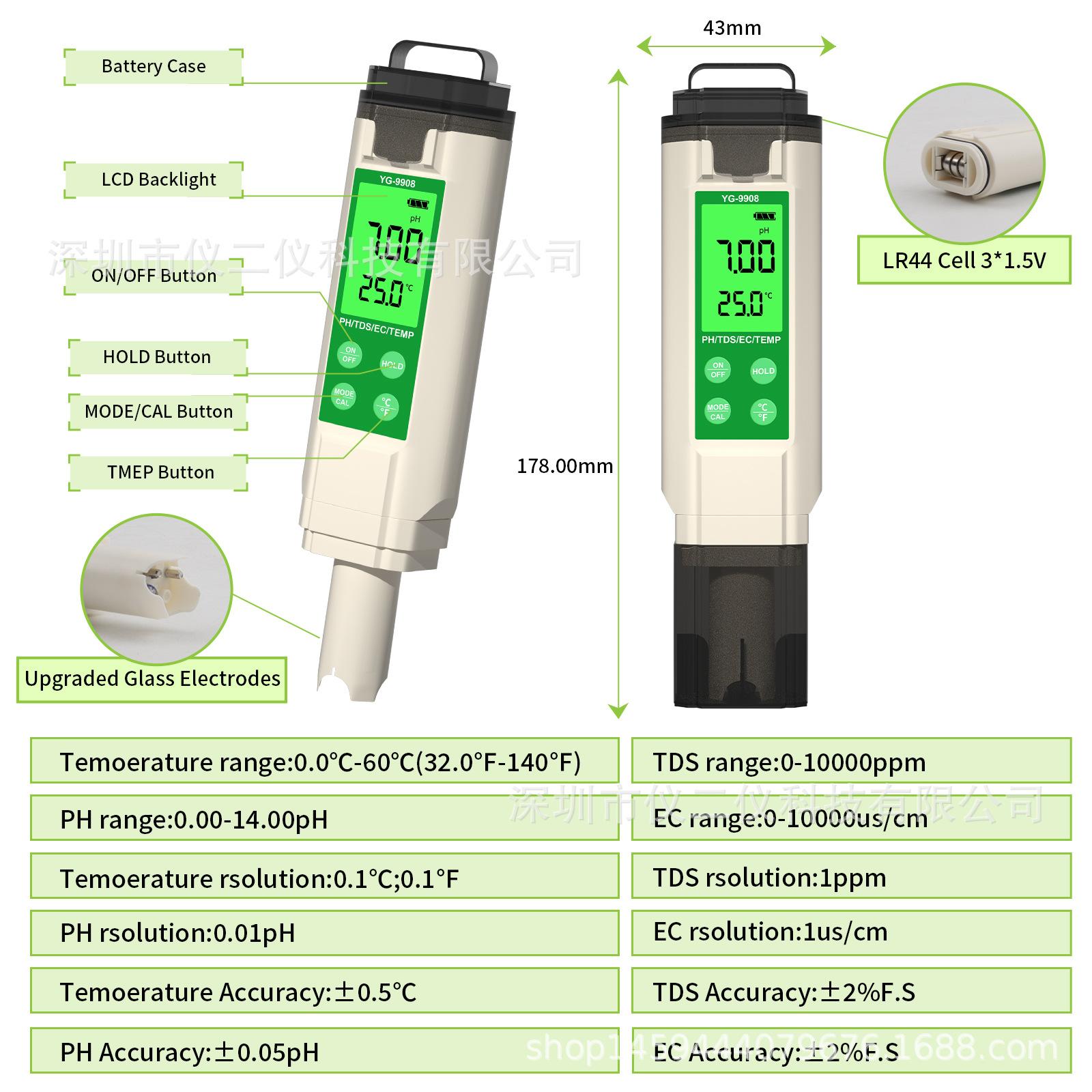 Comercio exterior nuevo detector de calidad del agua medidor de PH para pecera pluma TDS pluma de detección de valor EC probador de calidad del agua doméstico 4 en 1