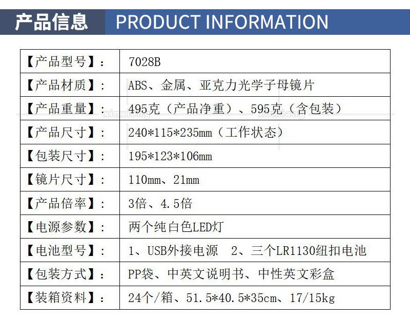 Alta velocidad alta definición espejo grande reparación de placa de circuito electrónico lectura con iluminación LED enchufe lupa de escritorio