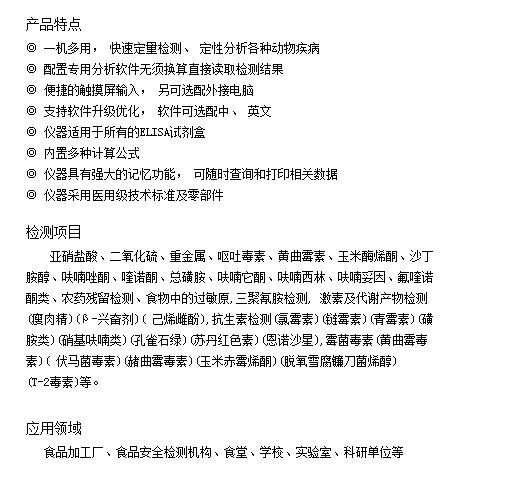El instrumento adopta componentes y requisitos de grado médico, un sistema preciso de análisis fotoeléctrico y un sistema de análisis de datos riguroso y factible. El software de versión estándar profesional hace que la operación del instrumento sea más simple y conveniente, y los resultados experimentales más rápidos. De acuerdo con la demanda del mercado y los requisitos del cliente, la empresa ha estado investigando continuamente durante muchos años y ahora cubre las principales plantas procesadoras de alimentos, instituciones de pruebas de seguridad alimentaria, comedores de unidades procesadoras y comerciales de productos agrícolas y complementarios, y otras instituciones, y ha ocupado una cierta cuota de mercado.