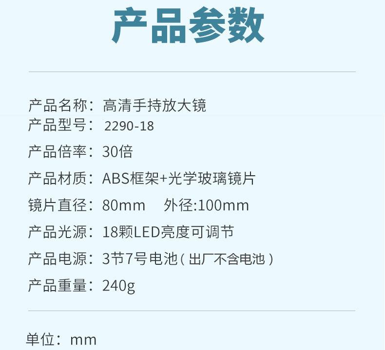 Compra Lupa de mano con ajuste de tres pasos y 18 luces LED para lectura de ciencia y aventuras para personas mayores con imágenes de alta definición de 30 aumentos al por mayor en Joom.pro