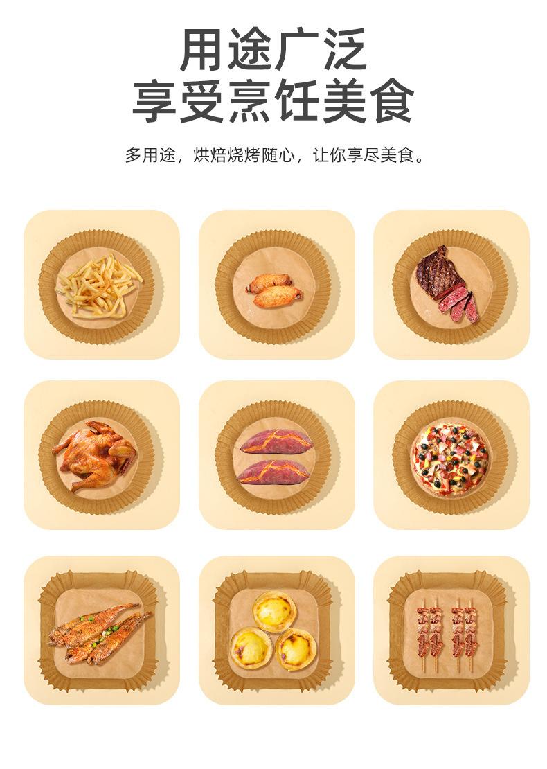 Papel Especial para Freidora de Aire de Grado Alimenticio Papel Almohadilla Absorbente de Aceite Papel Antiadherente Hogar Comida Papel de Silicona Papel para Hornear Plato Papel Transfronterizo