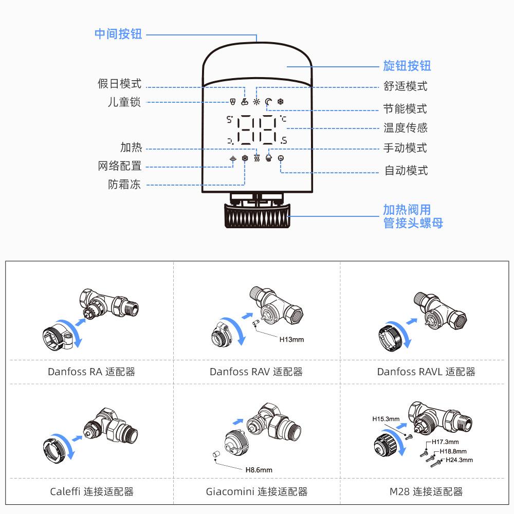Válvula Termostática Inteligente Wifi Tuya Controlador de Radiador Controlado Directamente por Aplicación Móvil Termostato Inteligente