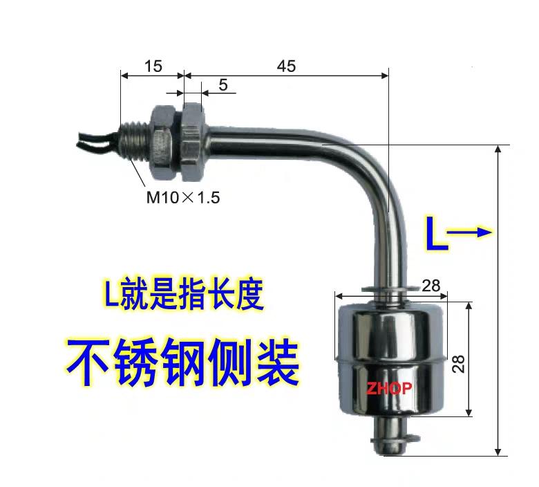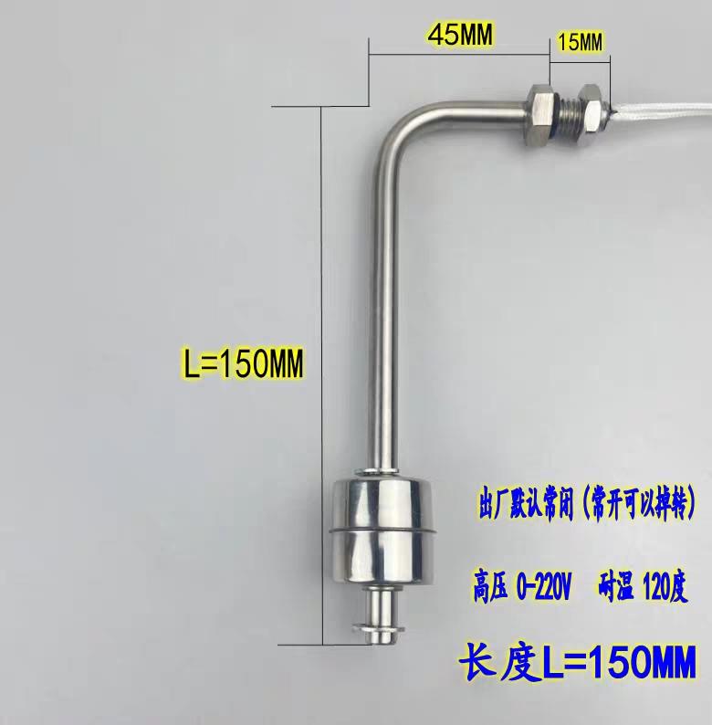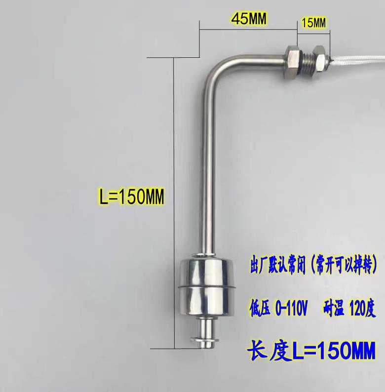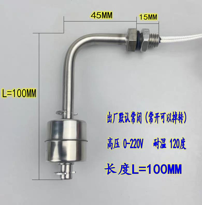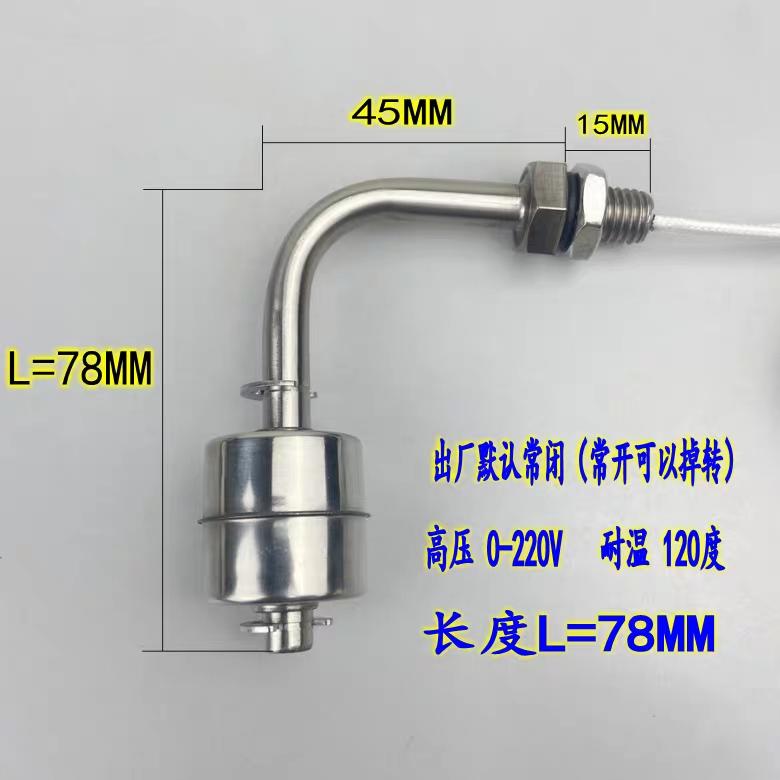 Interruptor de Flotador Único Alta Temperatura Montaje Lateral Nivel de Líquido Interruptor de Nivel de Agua Controlador de Nivel de Líquido Acero Inoxidable 304 Tipo L Ángulo Recto