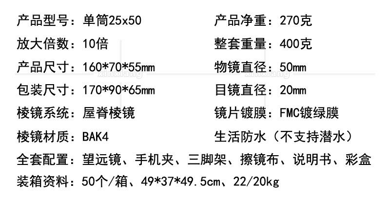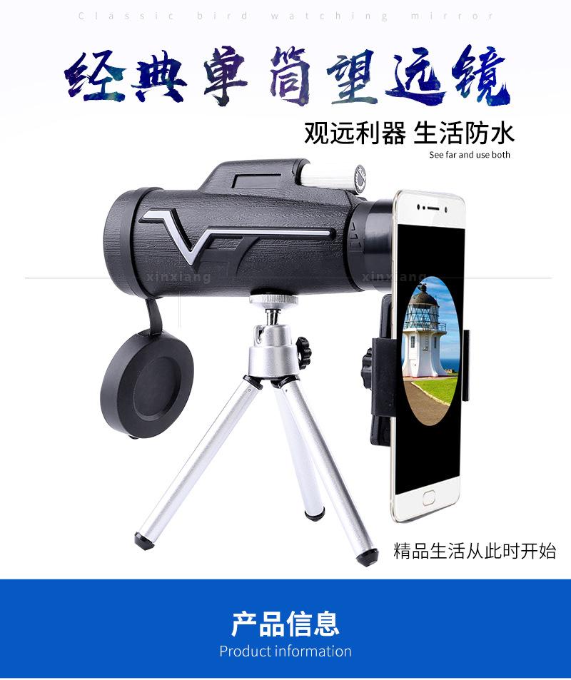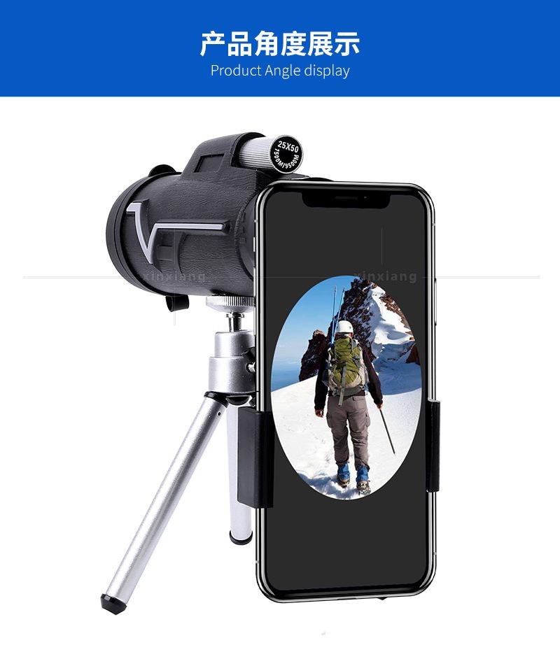 Monoculares 25x 50 de comercio electrónico transfronterizo, totalmente ópticos, para exteriores, observación de aves, juegos, trípode, clip para teléfono móvil