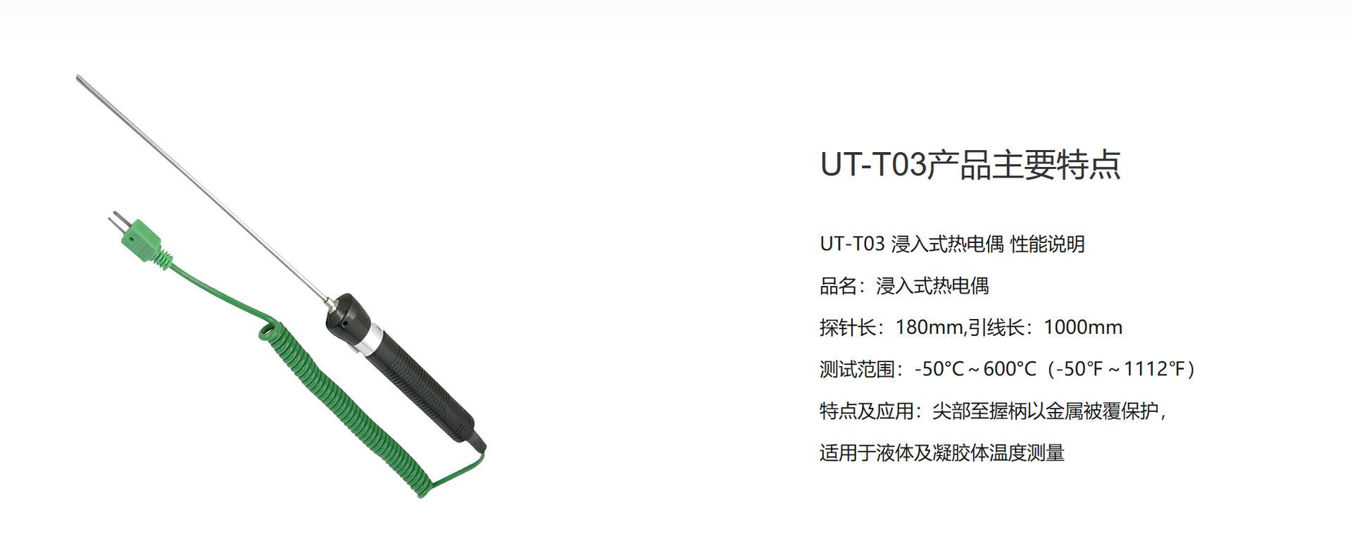 Ut-t01 thermocouple, Ut-t03 immersion thermocouple, Ut-t04 piercing thermocouple, Ut-t05 gas thermocouple, Ut-...