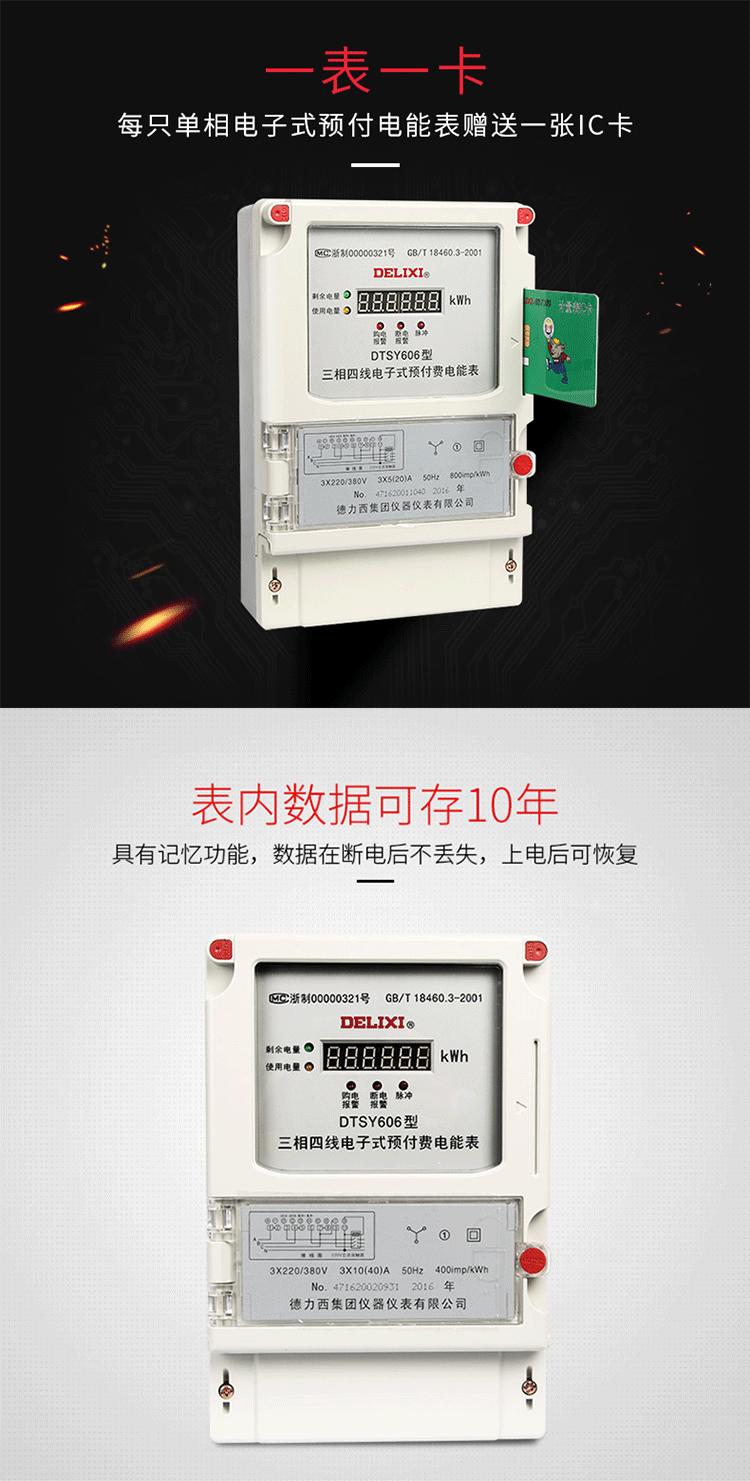 Medidor Bidireccional Inteligente Delixi Electric DTSY606 Trifásico Cuatro Hilos Prepago Energía Eléctrica Medidor de Tarjeta Enchufable Tarjeta IC