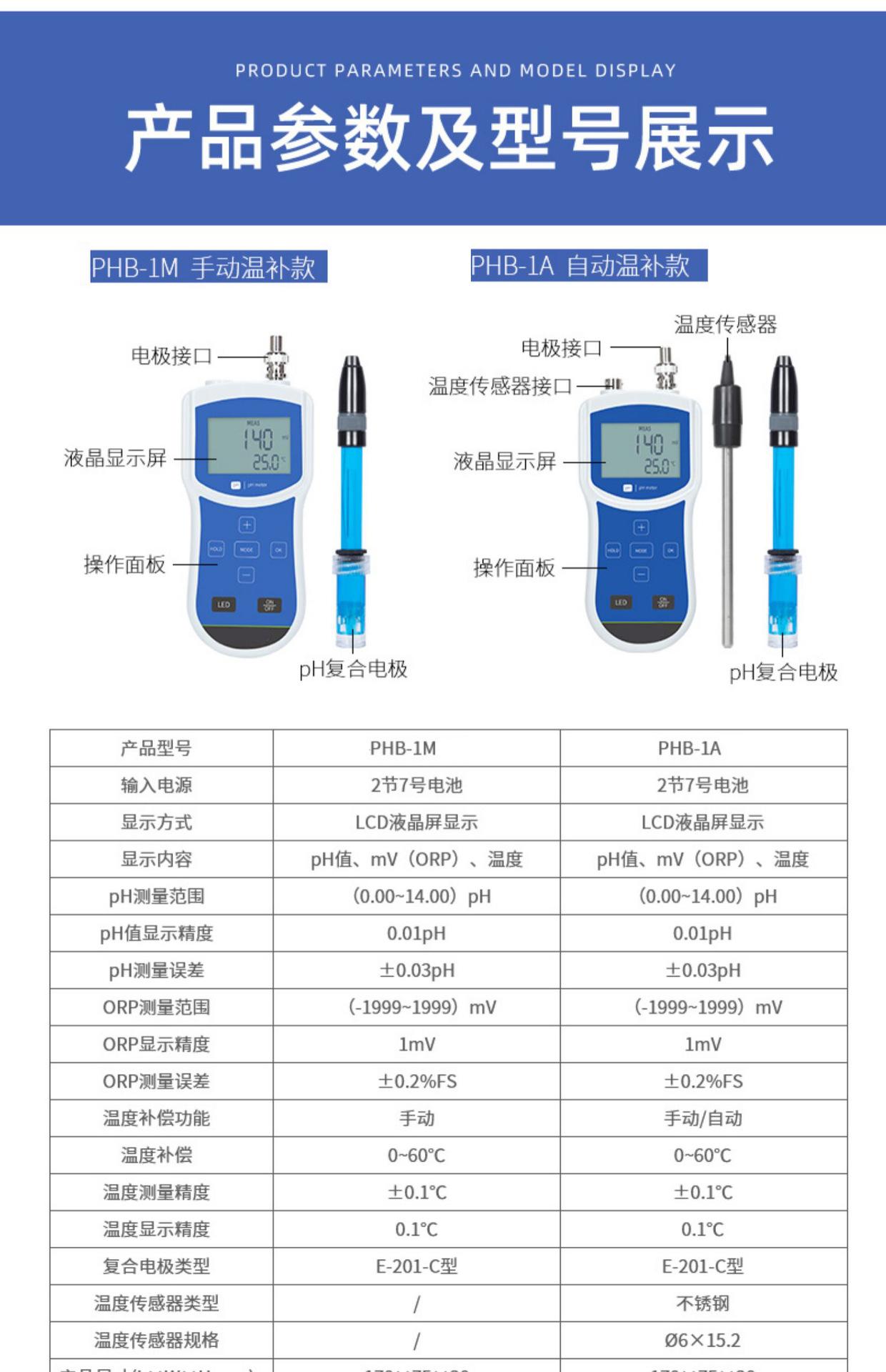 Phb-1m manual temperature compensation, Phb-1a automatic temperature compensation, Ddb-1m manual temperature c...