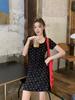 2025 Nueva Moda de Verano Floral Francés Negro Adelgazante de Cintura Look Vestido Línea A Femenino y Elegante Falda Larga