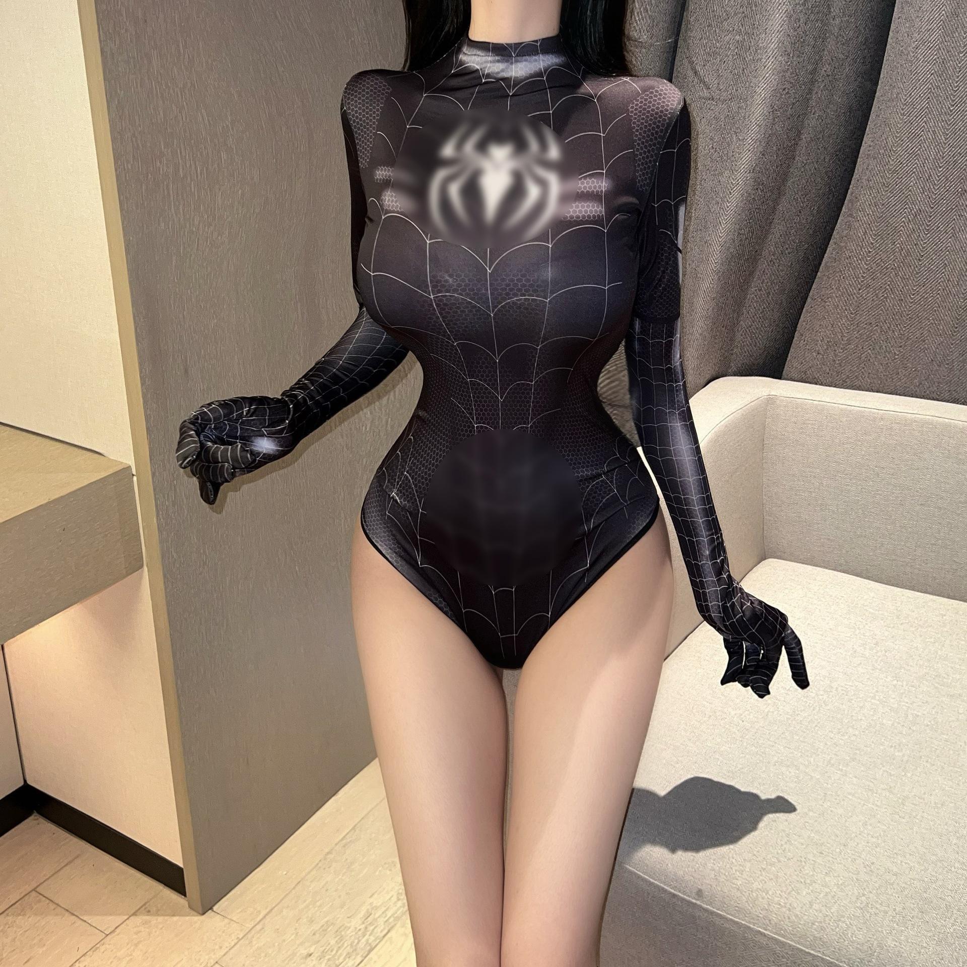 Lencería Sexy Tentación Femenina Uniforme de Spider-Man Sexy Mono Negro Body Traje Dropshipping