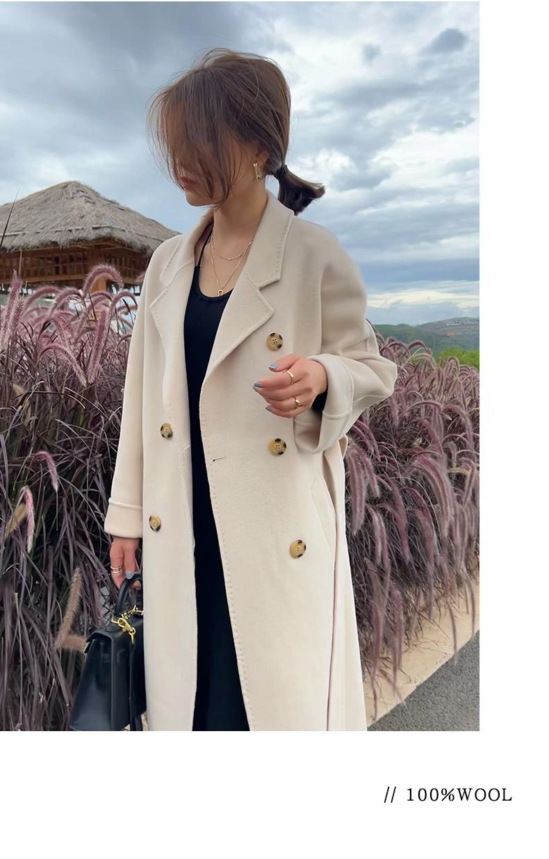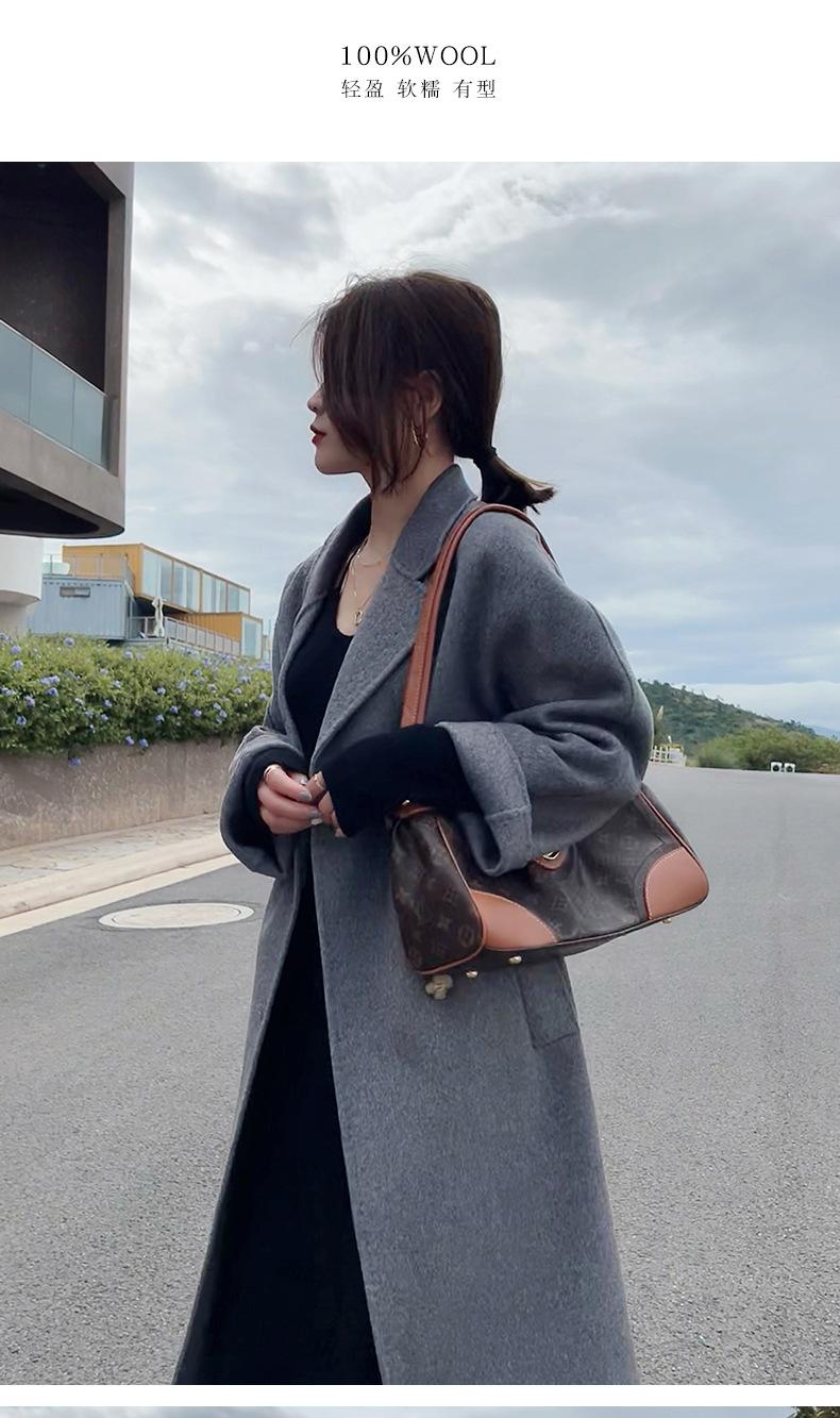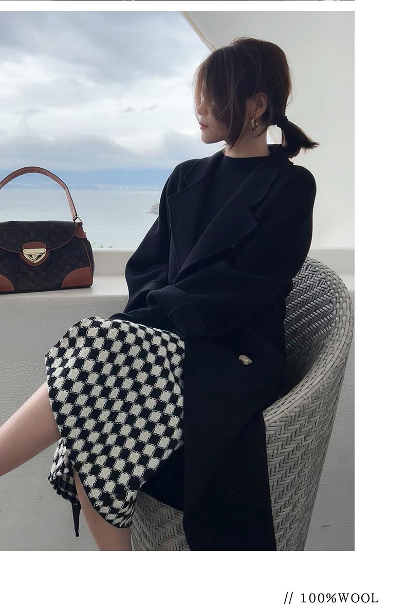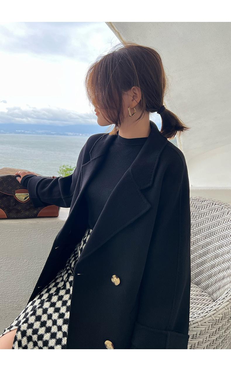 Primavera 2023 Otoño e Invierno Abrigo de Lana de Alta Gama para Mujer Cortavientos Engrosado Abrigo Negro Pequeño Mediano