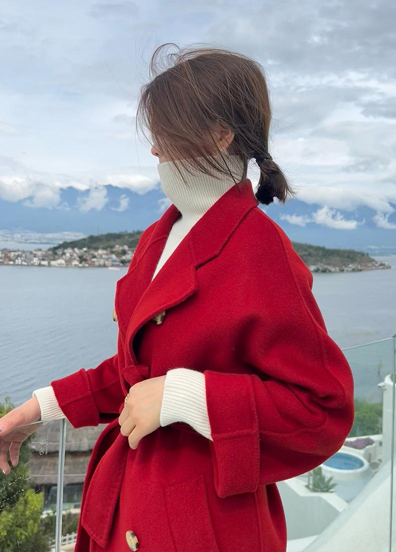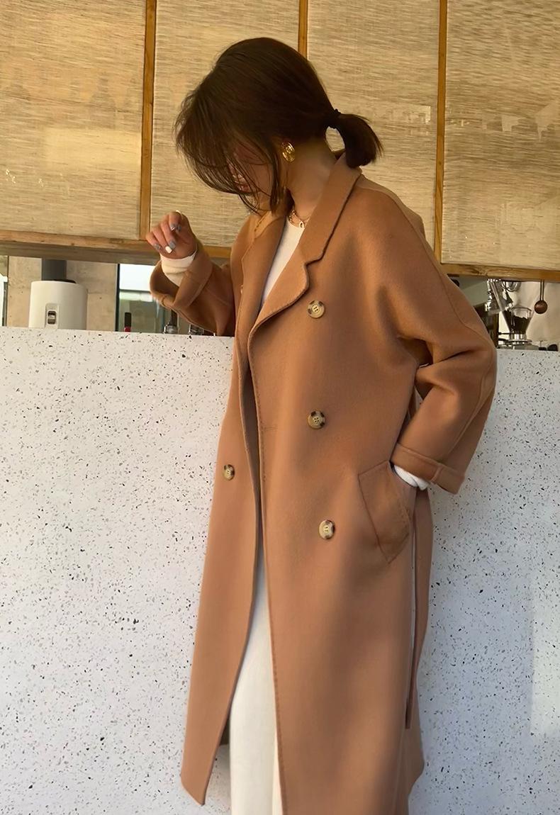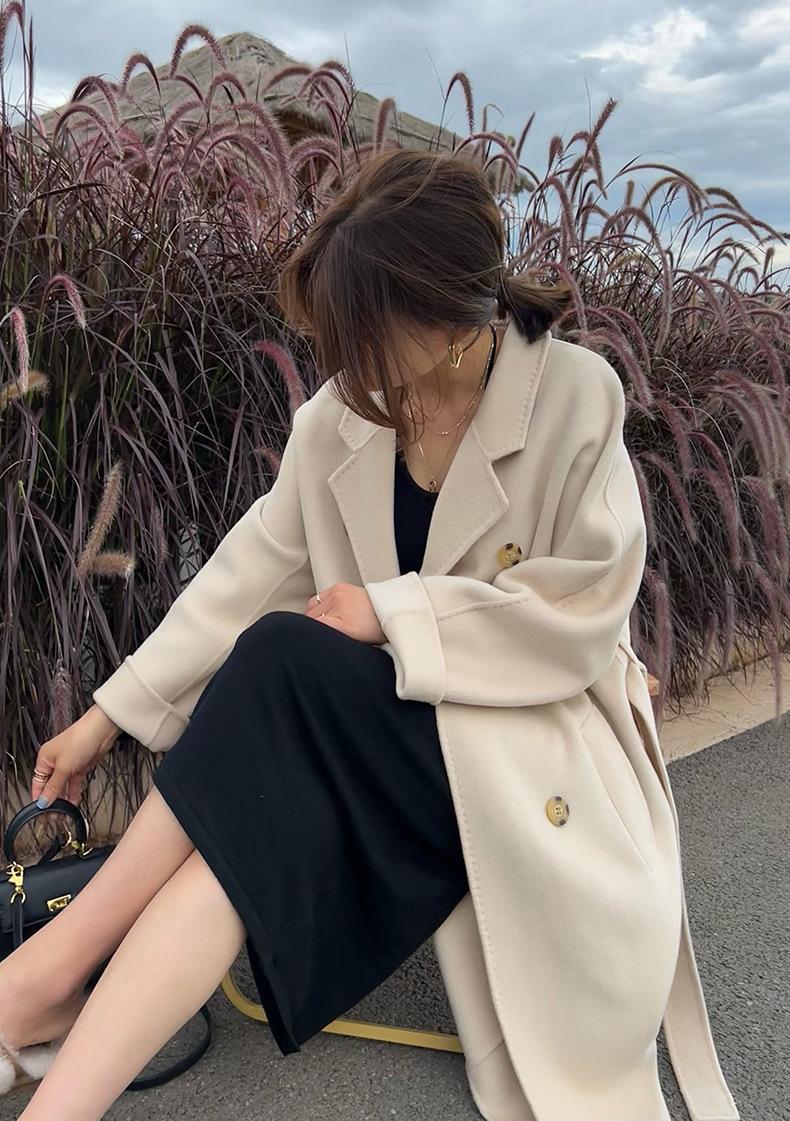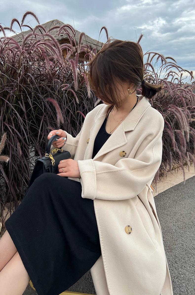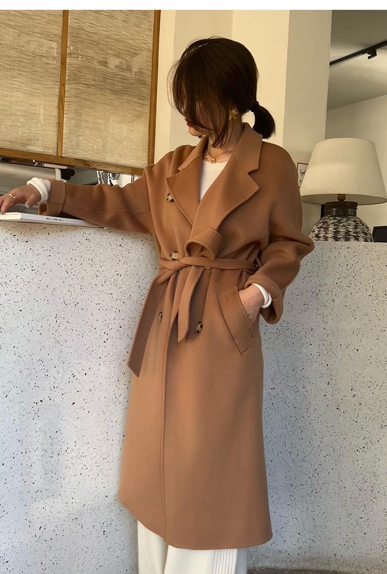 Primavera 2023 Otoño e Invierno Abrigo de Lana de Alta Gama para Mujer Cortavientos Engrosado Abrigo Negro Pequeño Mediano
