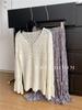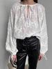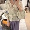Camisa Francesa de Encaje con Cuello en V para Mujer 2025 Verano Nuevo Estilo Adelgazante de Cintura Versátil Top de Manga Larga