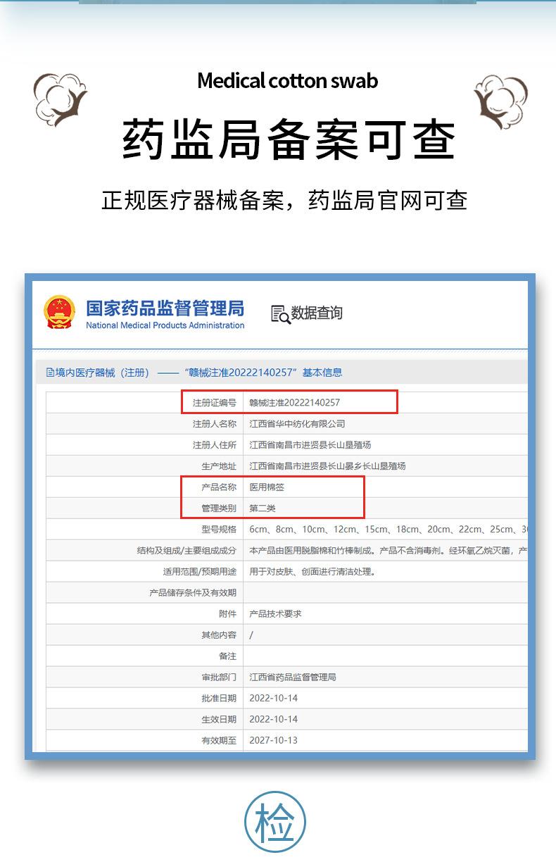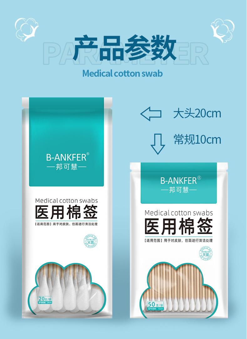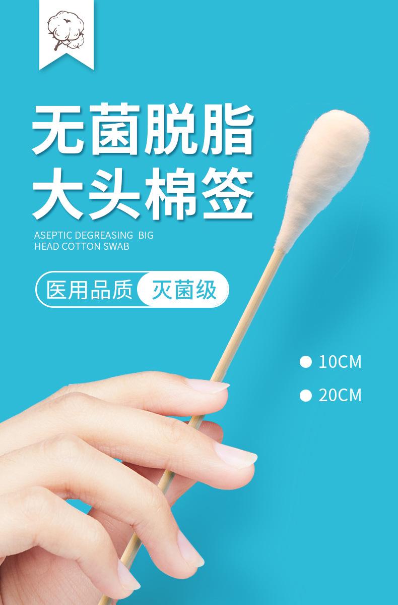 Hisopo de algodón médico de cabeza grande y largo hisopo de algodón extra largo palo de esterilización médica desechable ginecológico desengrasante hisopo de algodón alargado 20cm