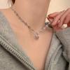 Collar Amor Diamante Rosa para Mujer Diseño Nicho de Lujo Ligero Sentido de la Moda Cadena Clavícula Simple Acero Titanio Color Libre Cadena de Collar
