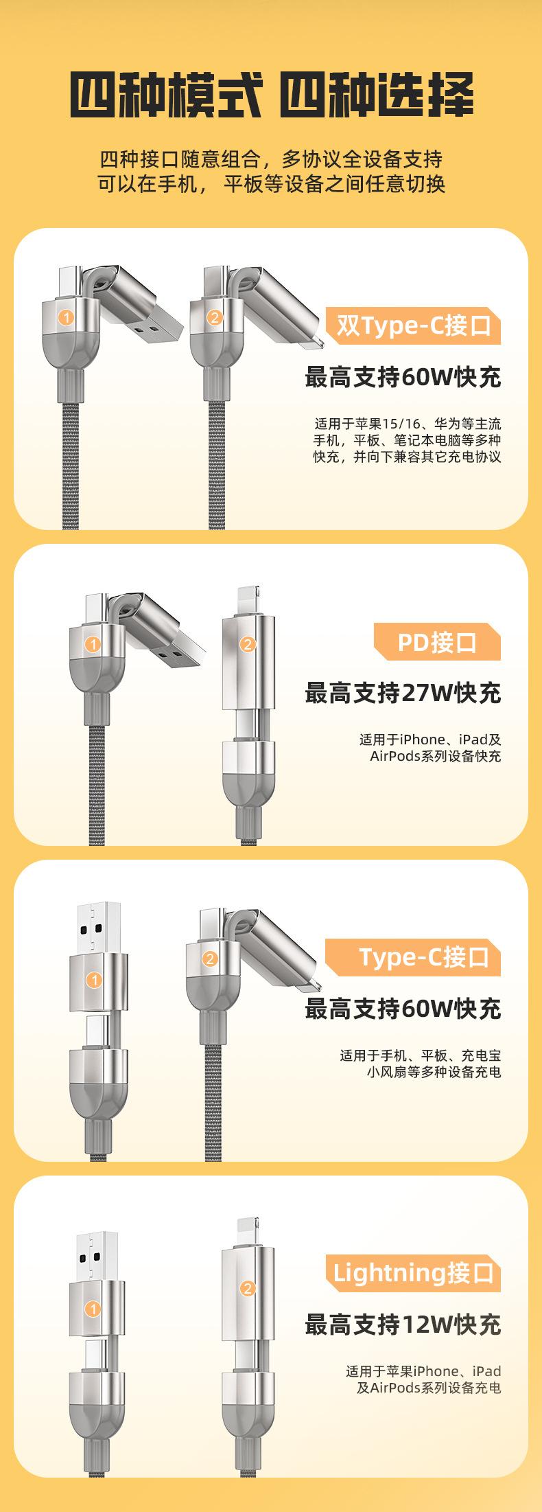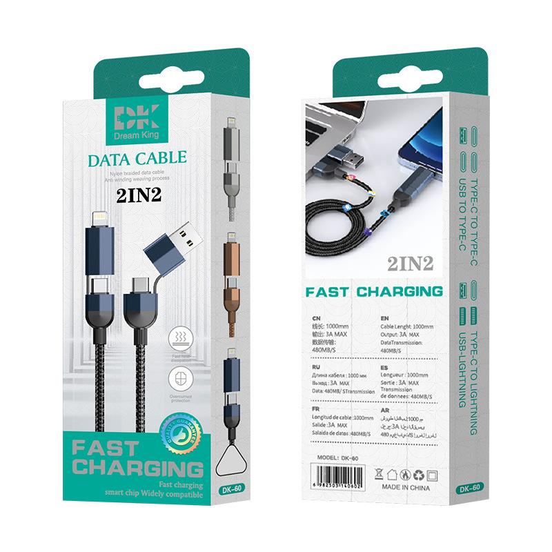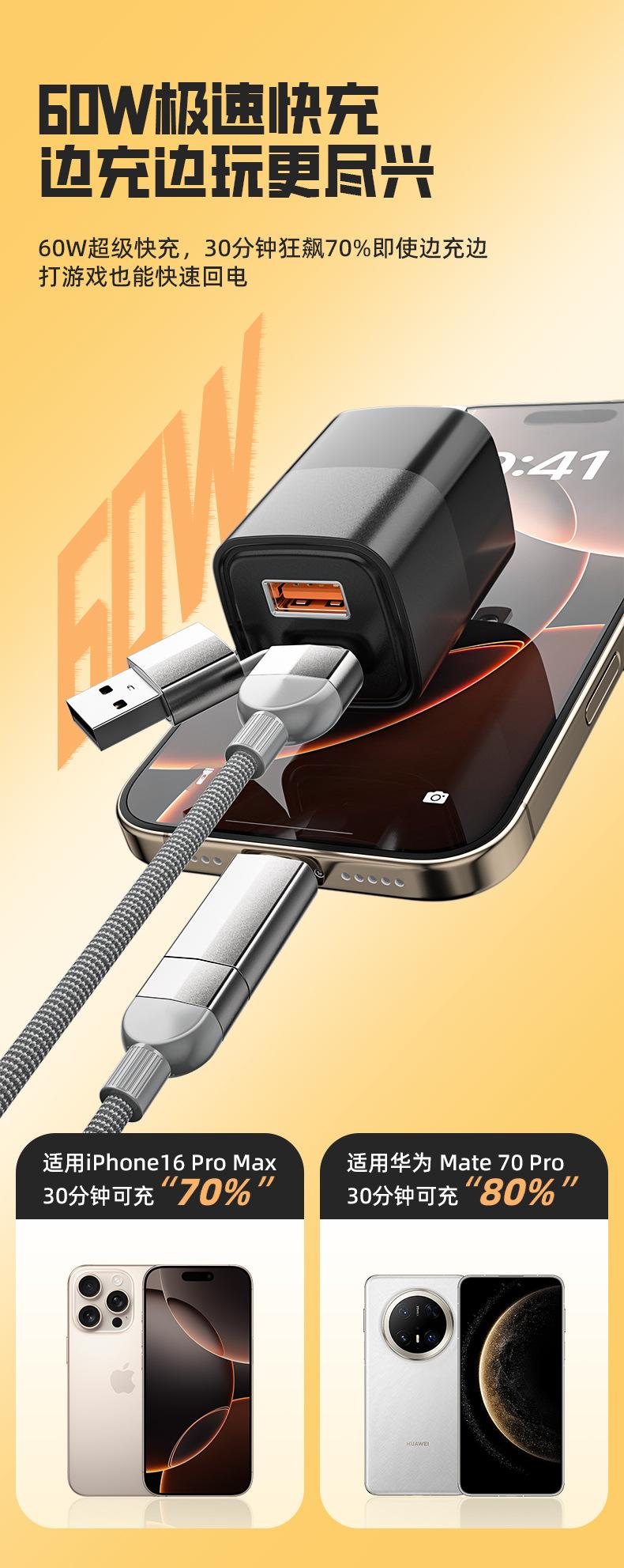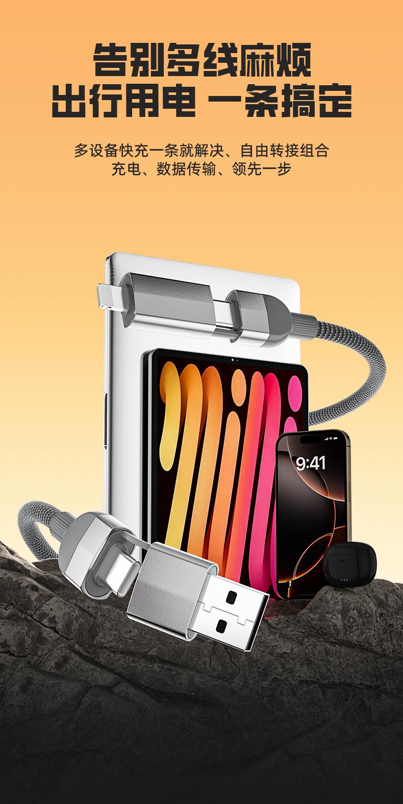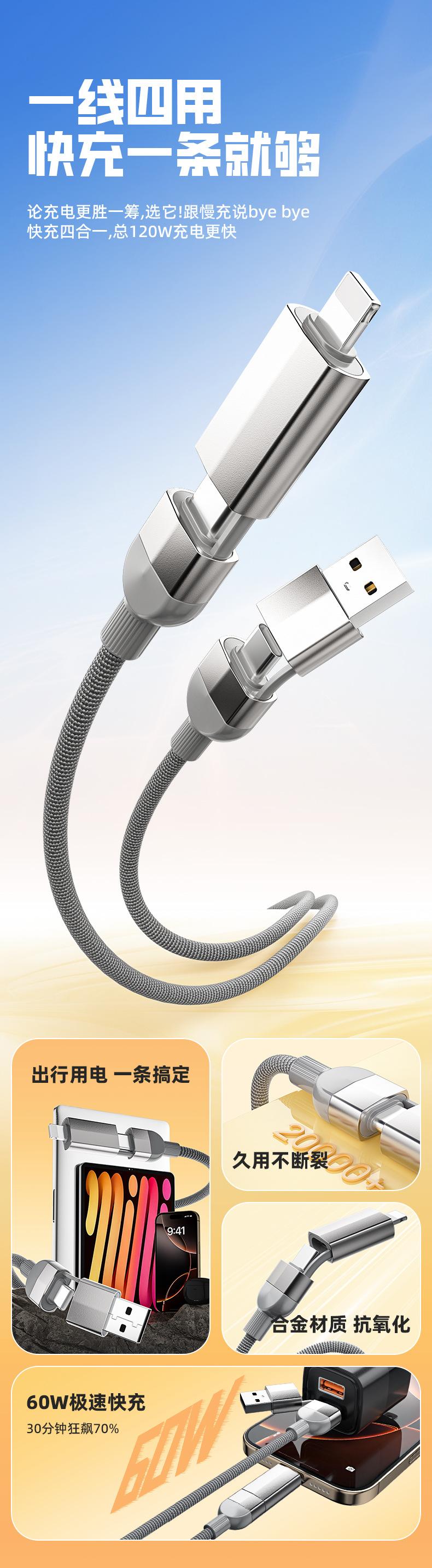 Cable de datos trenzado de carga súper rápida cuatro en uno de 120 W adecuado para cable de carga para teléfono móvil Apple Android tipo C al por mayor
