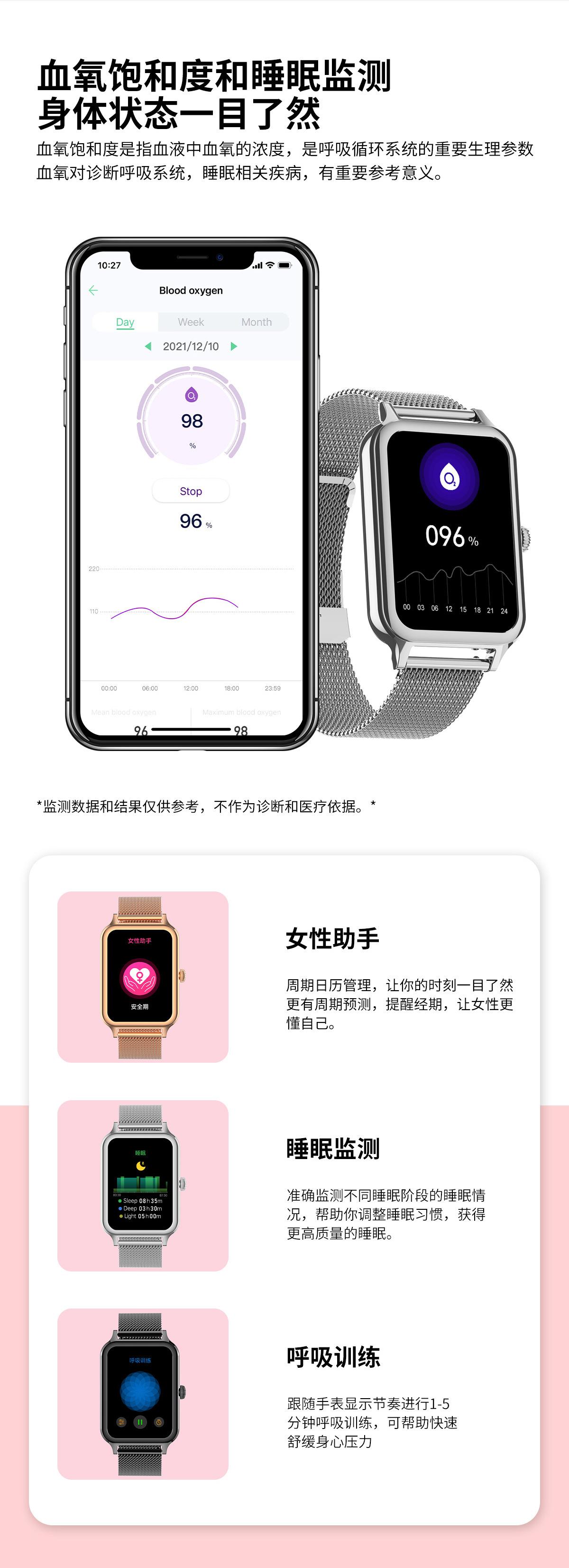 | Color de la pulsera | Correa de silicona: gris, rosa, negro |