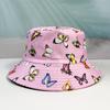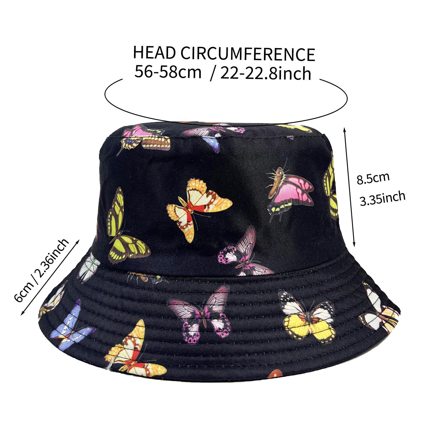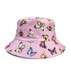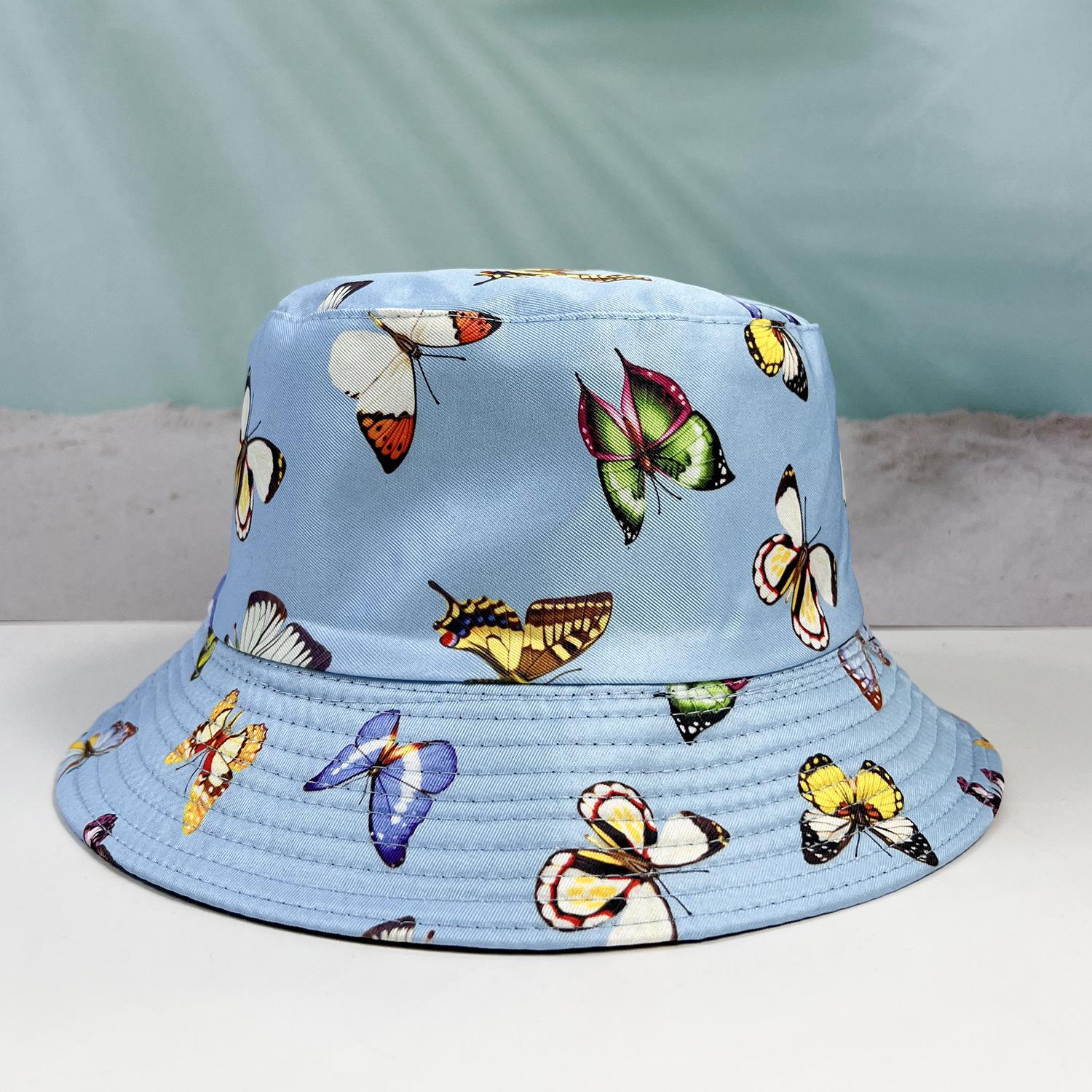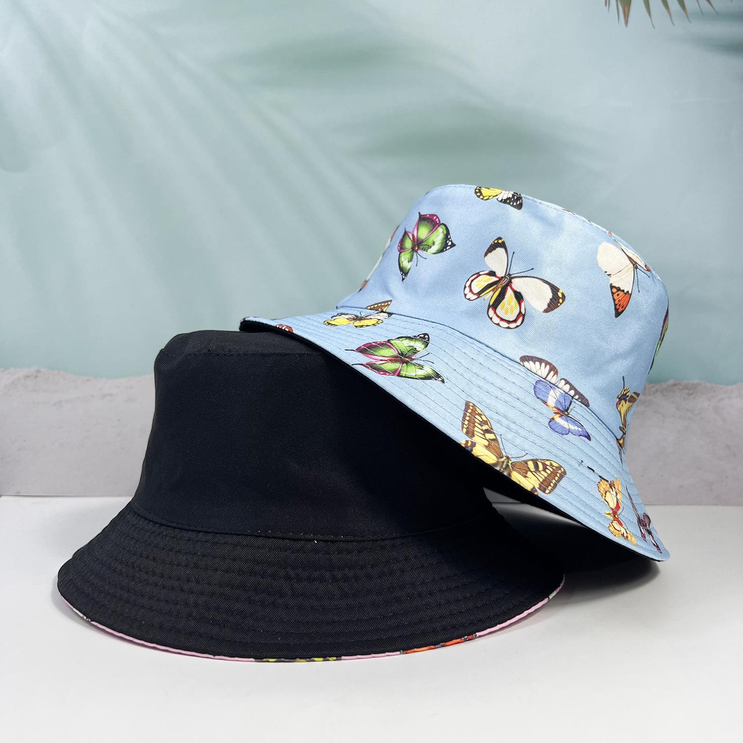 Sombrero de Pescador Casual con Estampado de Mariposas Coloridas Transfronterizo Sombrero de Cubo de Verano para Protección Solar Europeo y Americano Sombrero de Cubo Versátil Reversible