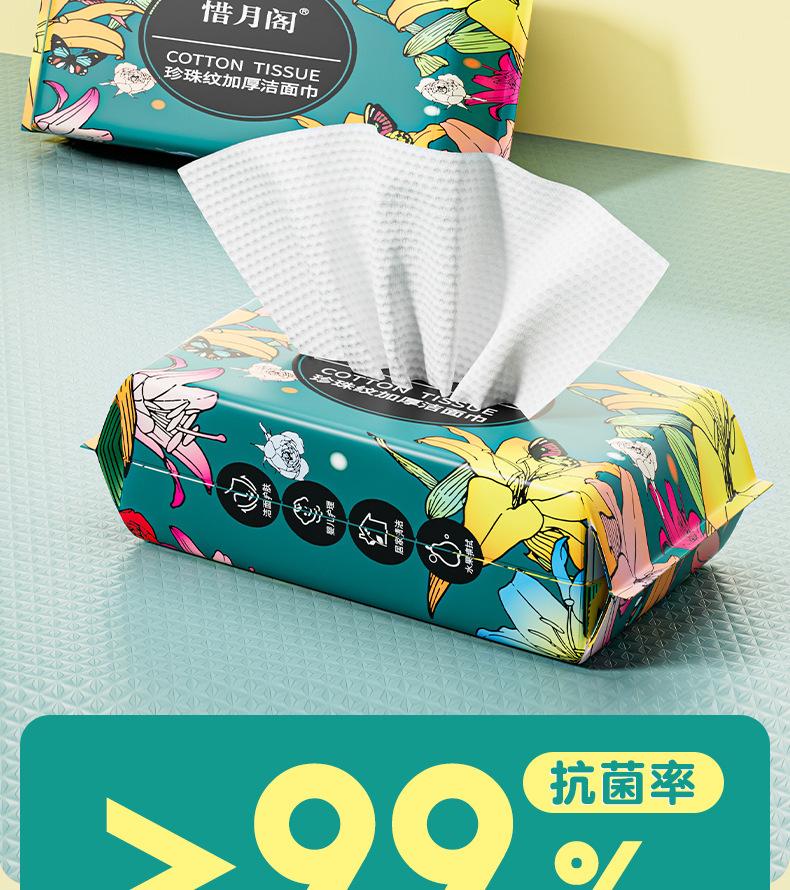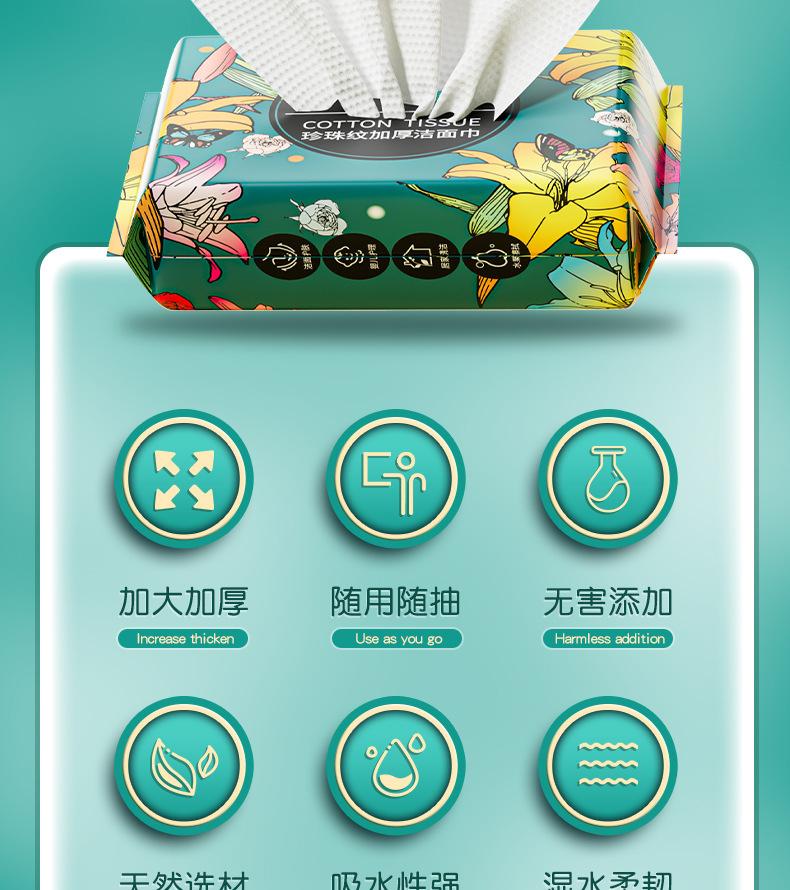 Toalla Desechable Removible para Limpieza Facial Engrosada Patrón de Perlas de Flores Verde Oscuro Toalla de Algodón Suave para Limpieza Facial de Doble Uso Seco y Húmedo