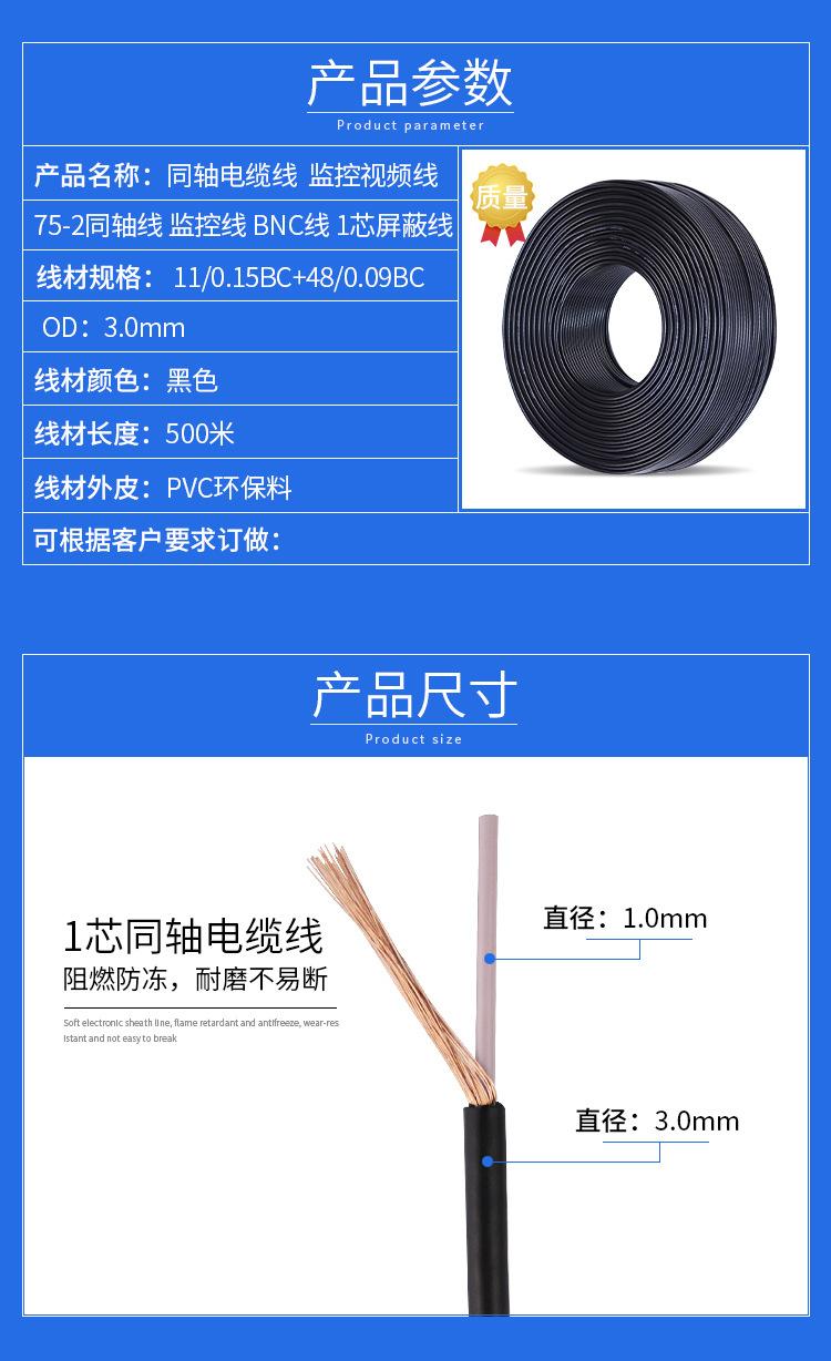 Cable Coaxial de Cobre Puro al por Mayor 75-2 Blindado de un Núcleo bnc Monitoreo de Seguridad Línea de Señal de Video HD Serie 48