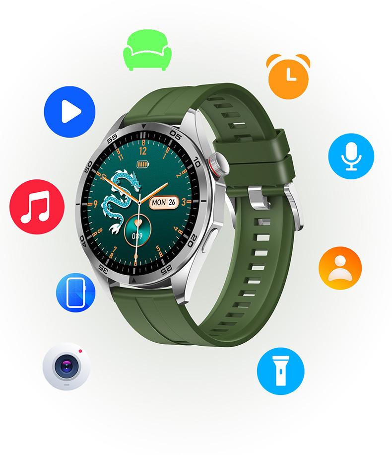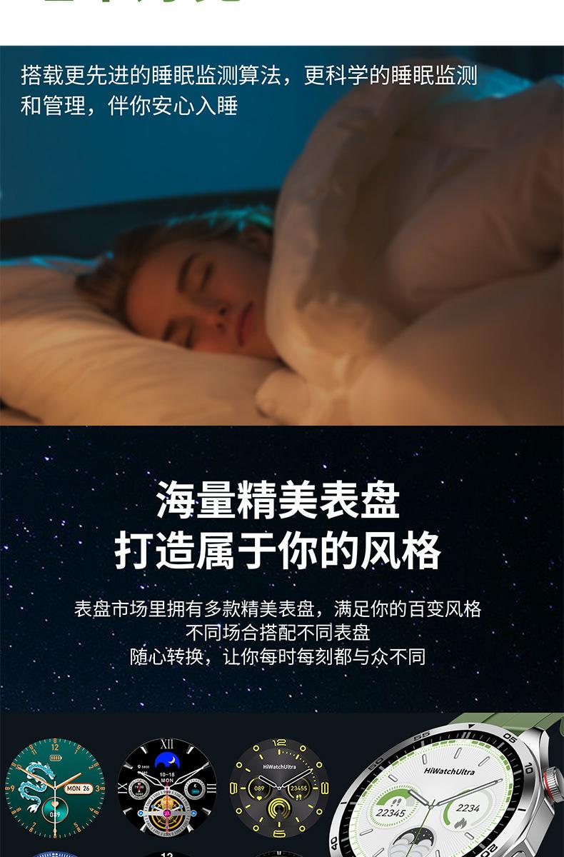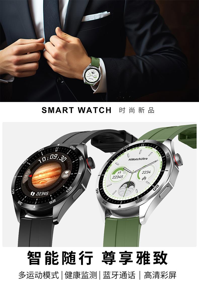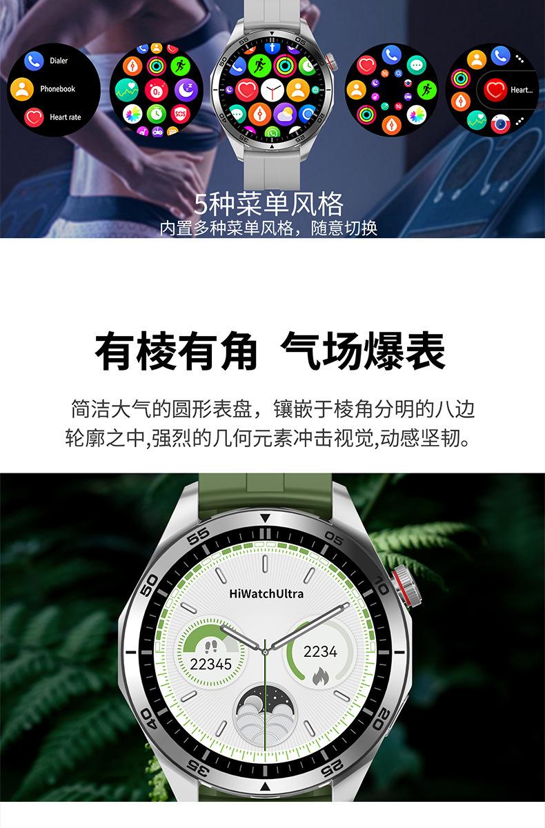Reloj redondo de pantalla grande HD de 1.5, 4 juegos, memoria grande, 5 conjuntos de UI, carga inalámbrica, audífono Bluetooth, 7 correas, aplicación hiwatch ultra