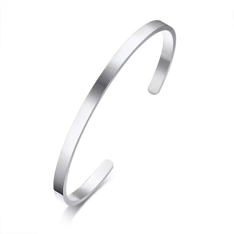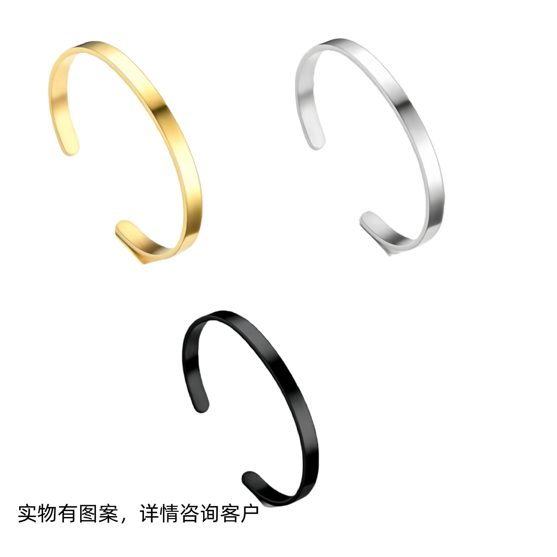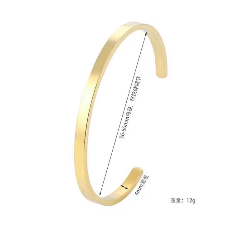 Pulsera Europea y Americana Transfronteriza Abierta de Acero de Titanio Grabada Tipo C 4mm Pulsera Acero Inoxidable No Se Desvanece Joyería de Mano Venta al por Mayor Simple
