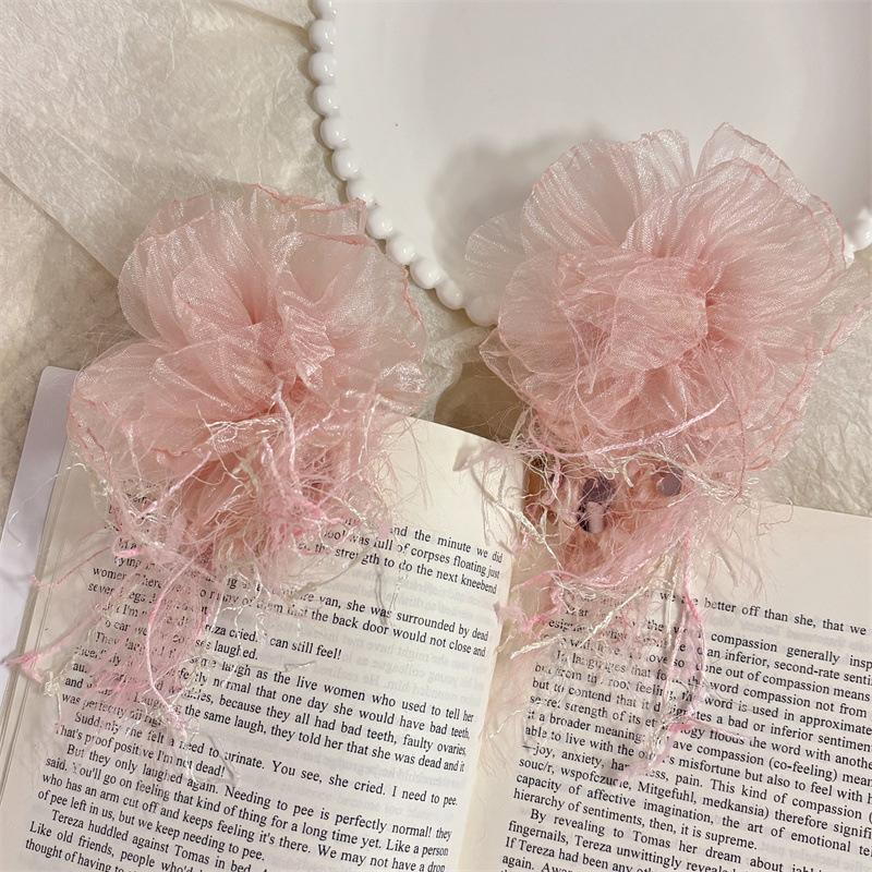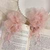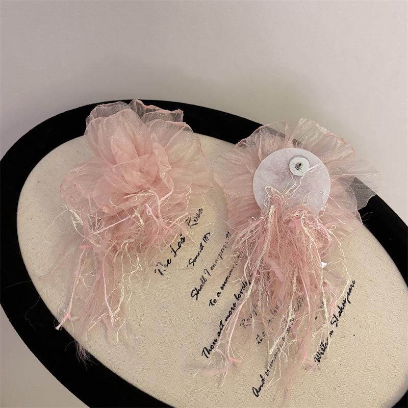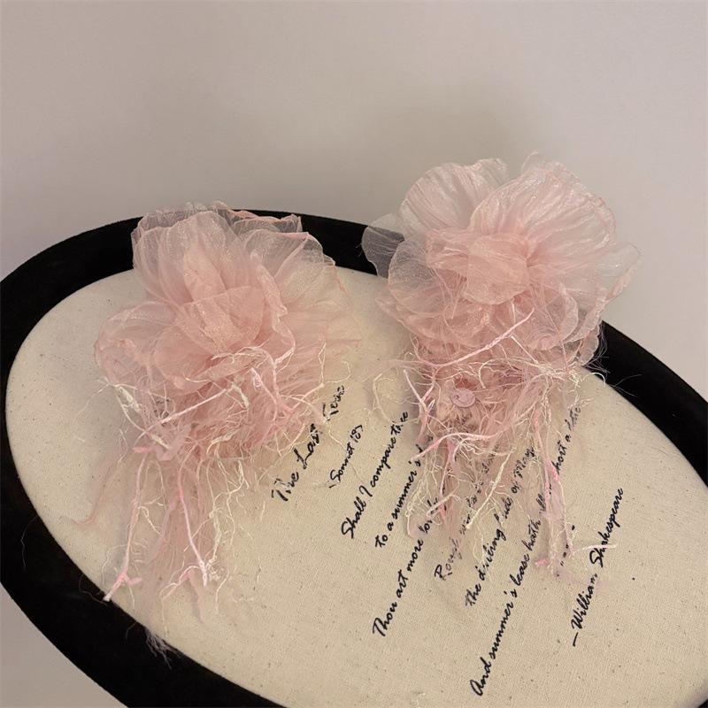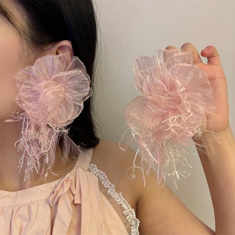 Aretes de Borla de Flores Rosa Malla Aretes de Cuentas Viento Festivo Exagerados Aretes Dulces